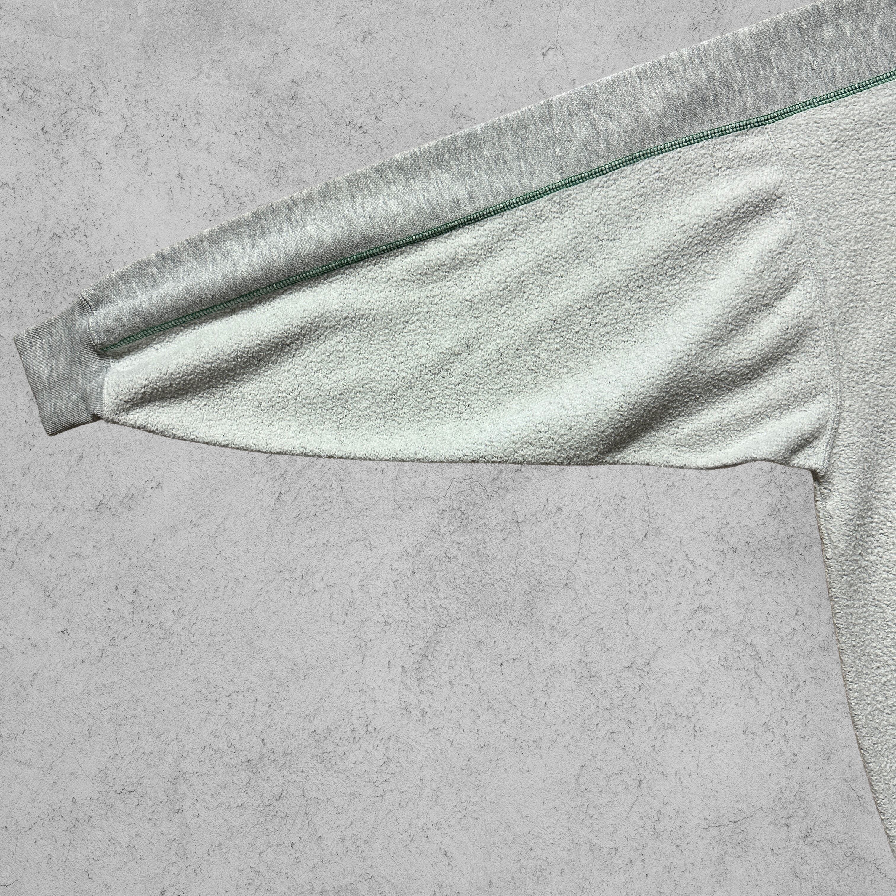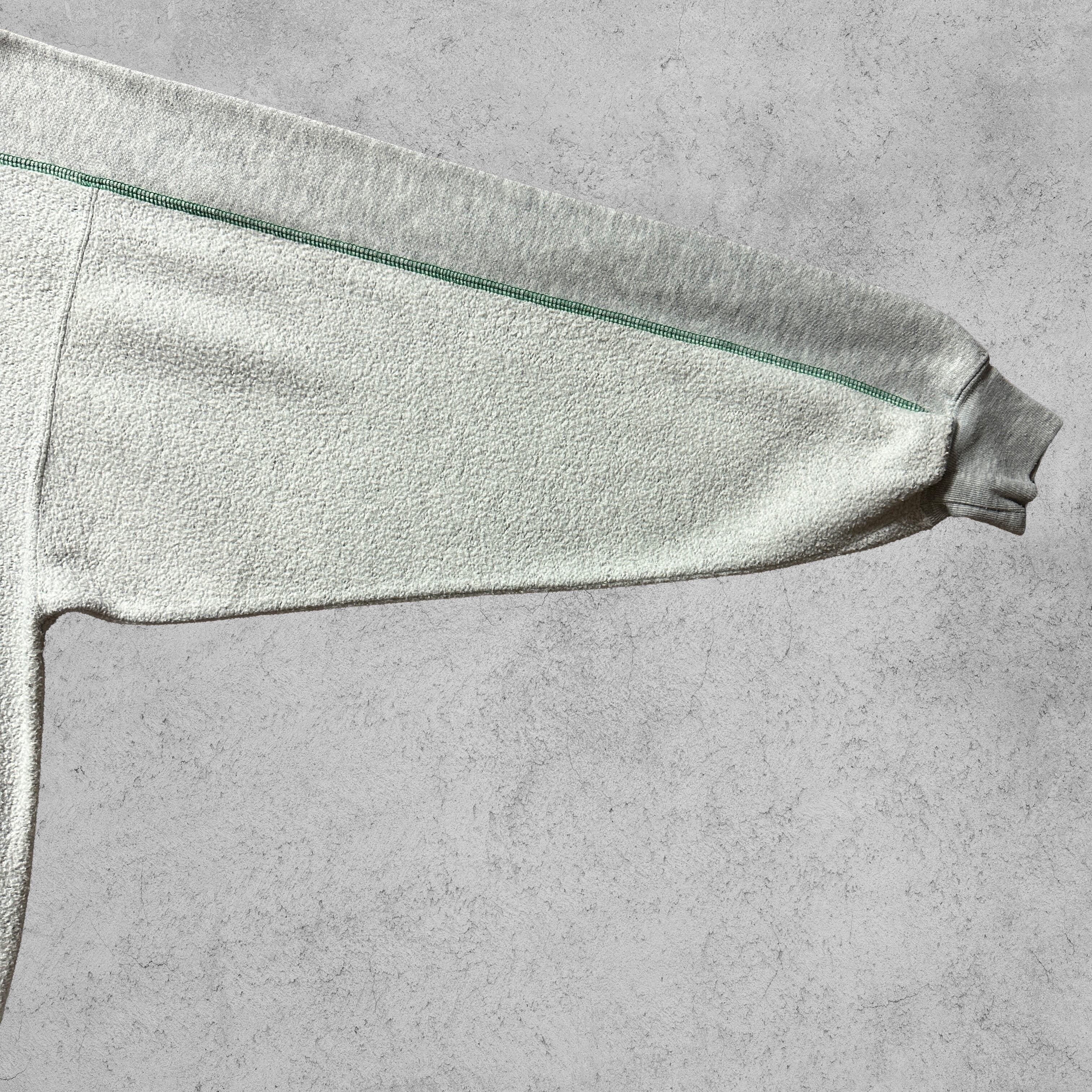 グレーの身頃に、グリーンのステッチライン&刺繍ロゴがアクセントになったデザイン。