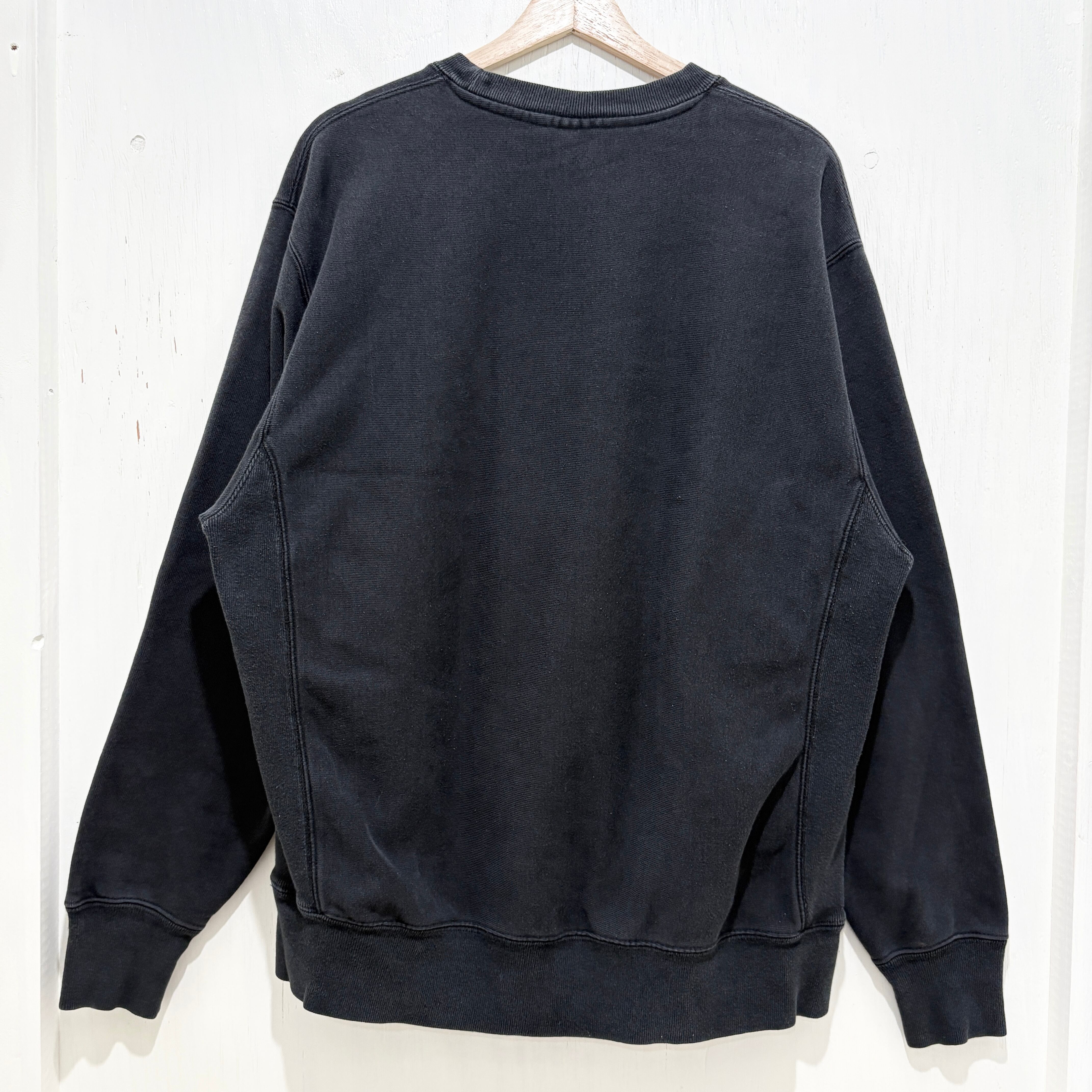 Championの名作「REVERSE WEAVE(リバースウィーブ)」、フロントと袖口にブランドロゴ刺繍が入った王道デザインのブラックスウェット。