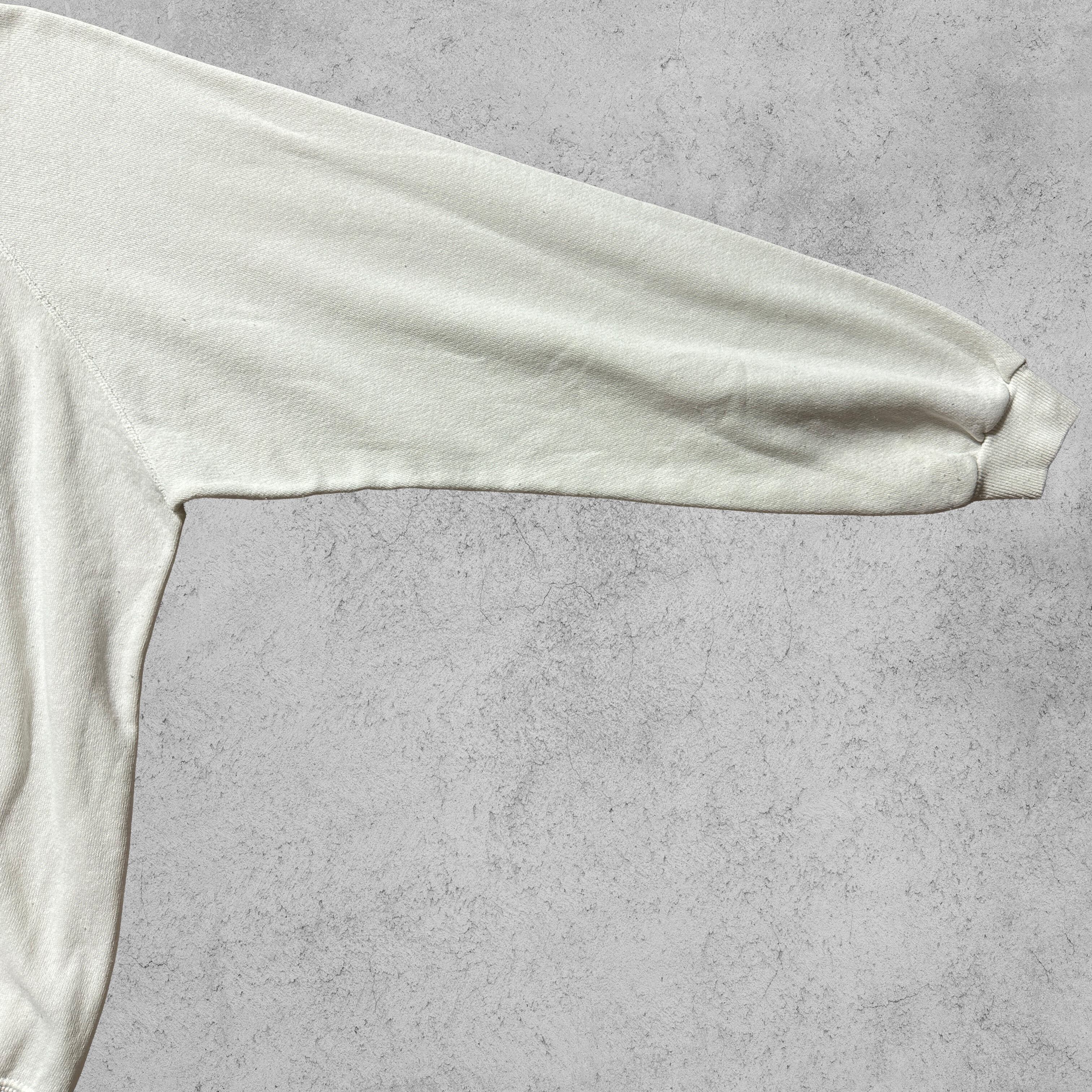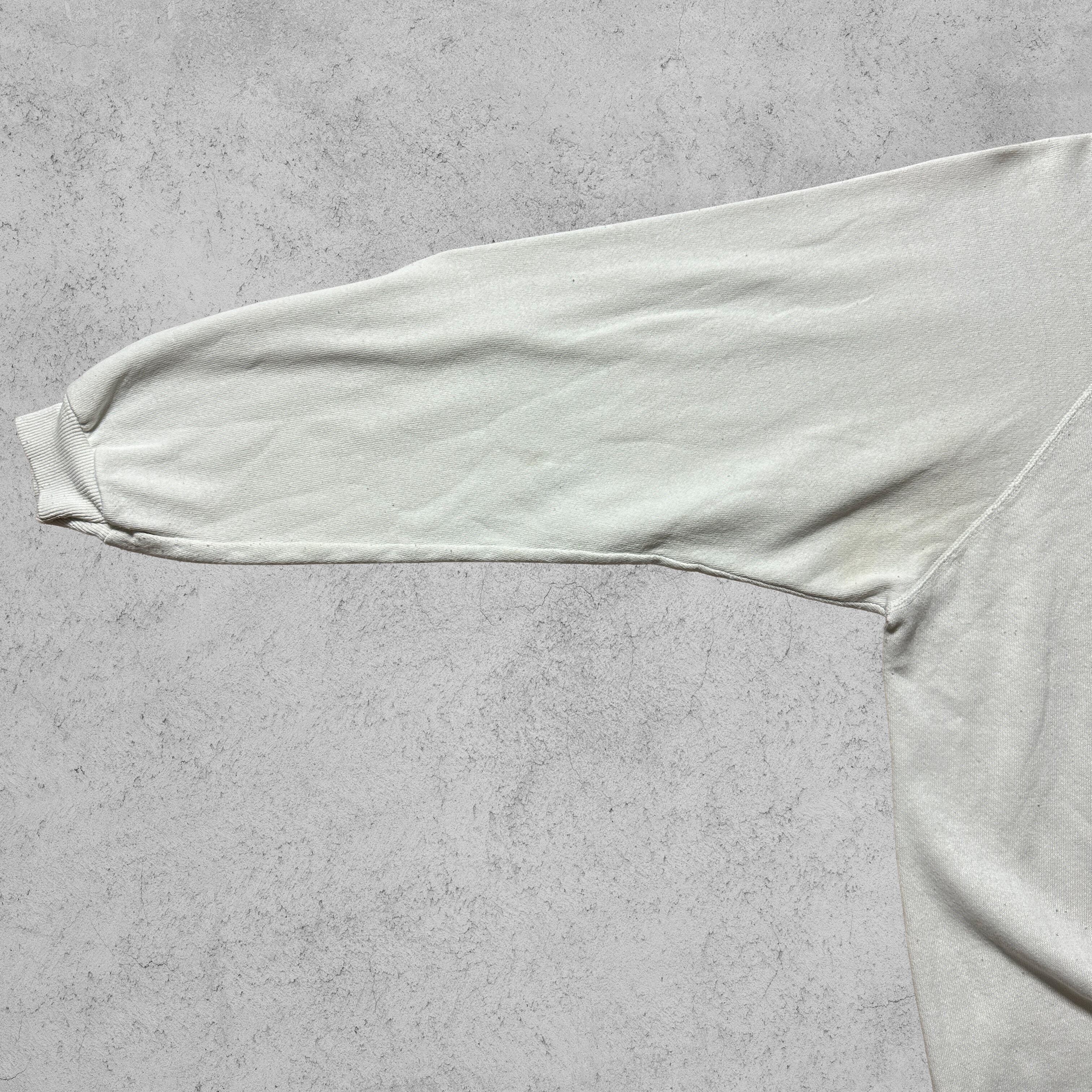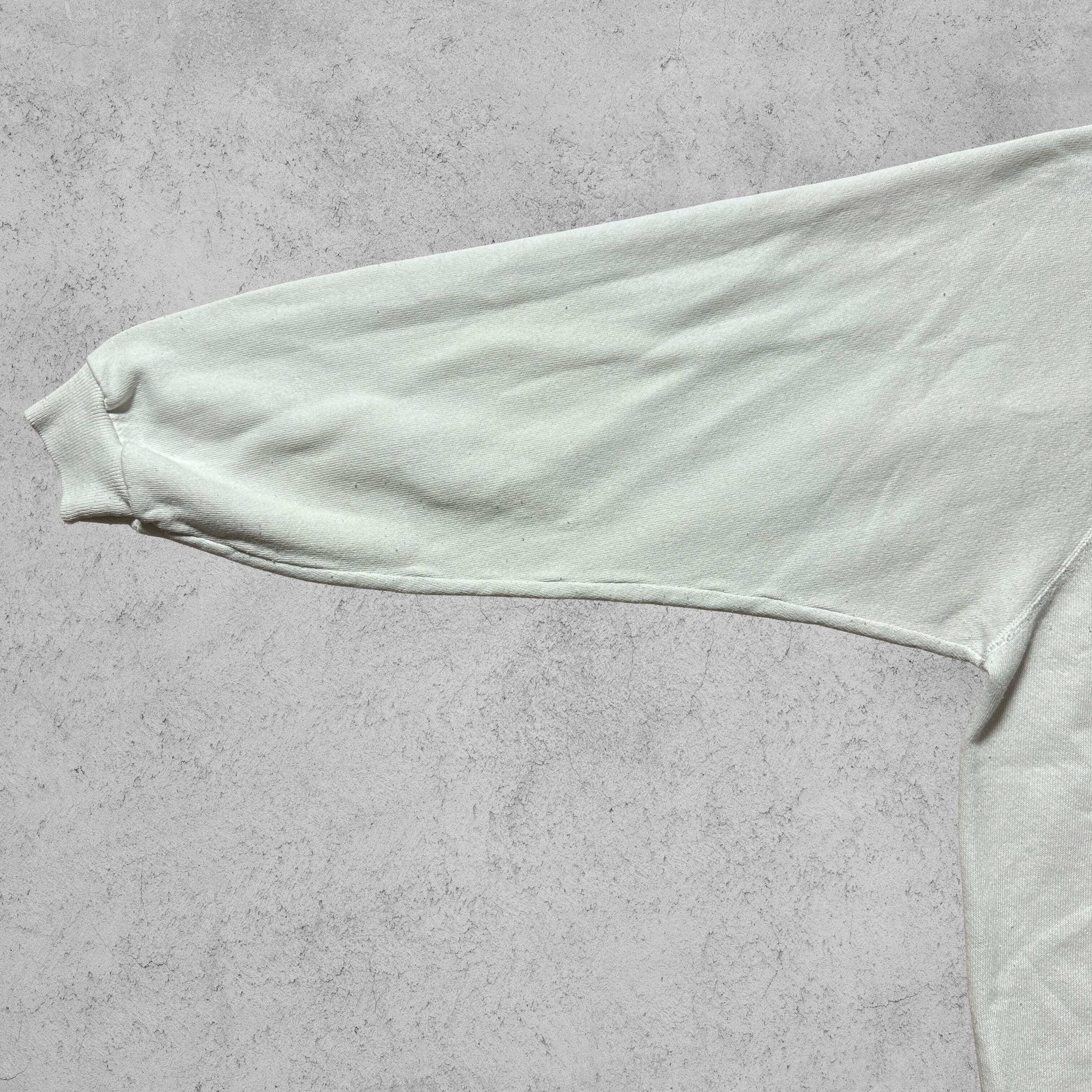 ボディは Hanes製 Made in U.S.A.、ラグランスリーブ仕様でリラックスした着心地。素材はコットン/ポリエステルのブレンドで、柔らかく馴染んだヴィンテージ特有の風合いが魅力。