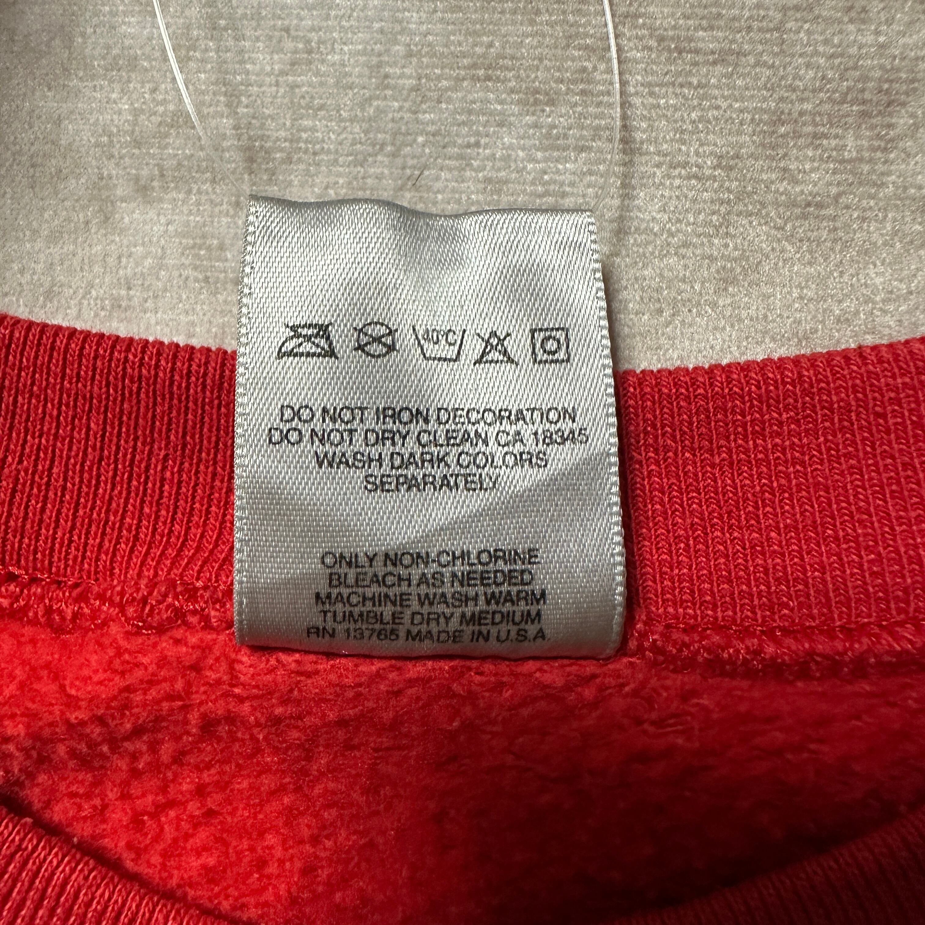 ボディはコットン50%・ポリエステル50%の肉厚なフルーツタグ“HEAVY”仕様。裏起毛で保温性も高く、今のストリートスタイルにも相性抜群。サイズはL表記ながら、アメリカ製らしいゆったりめのシルエットでオーバーサイズ着用にもハマる。