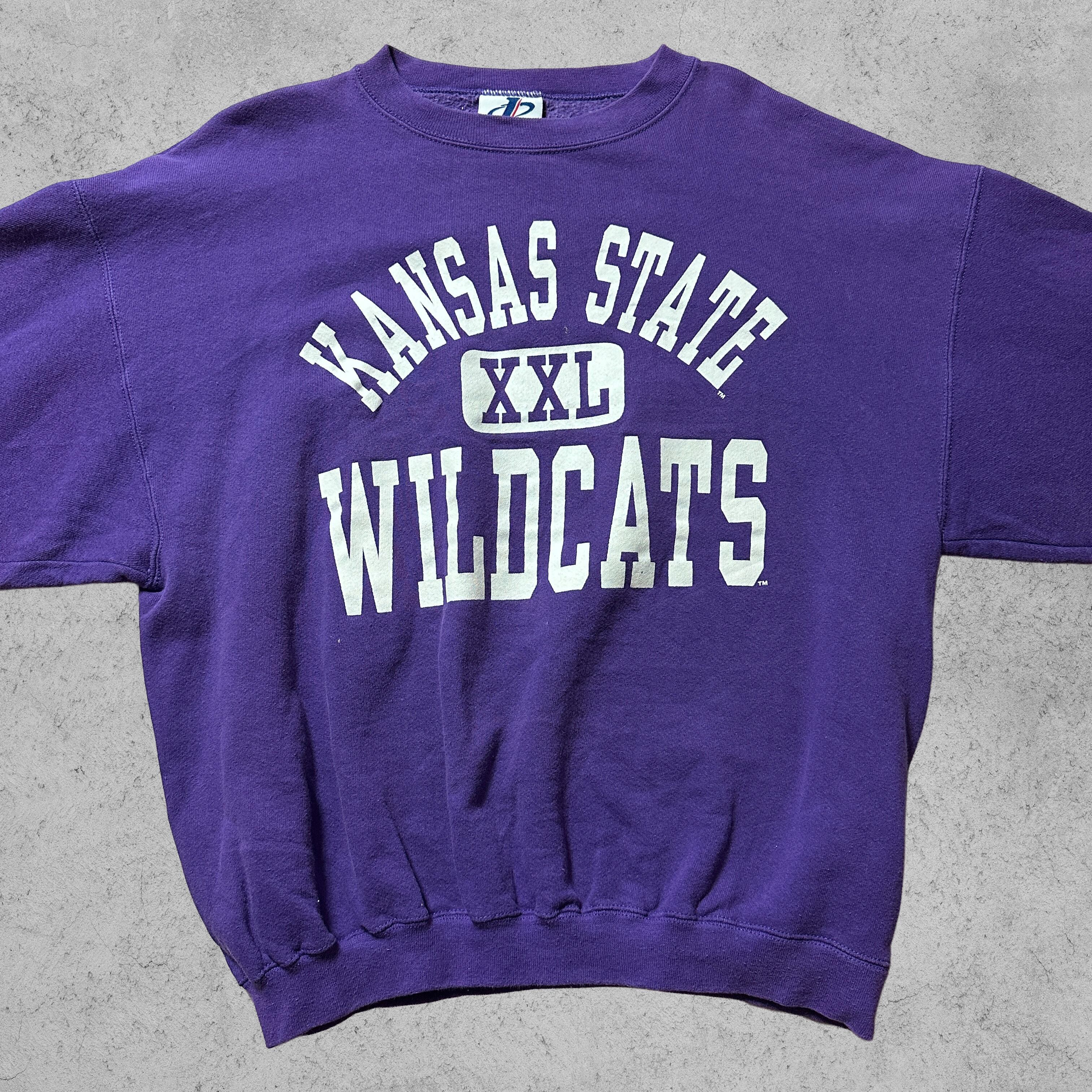 アメリカ・カンザス州立大学のマスコット「WILDCATS」ロゴがプリントされた、90年代のビッグサイズスウェット。