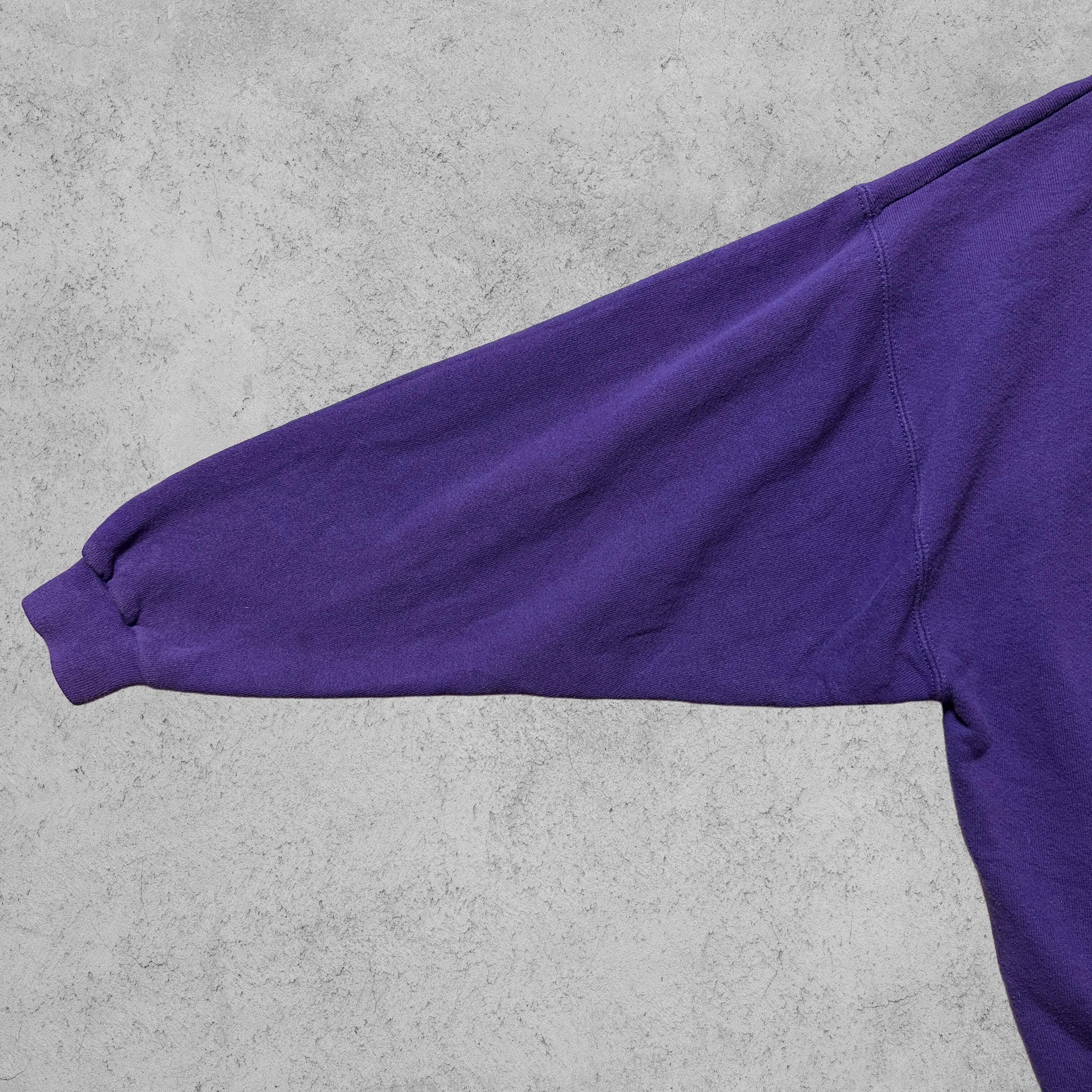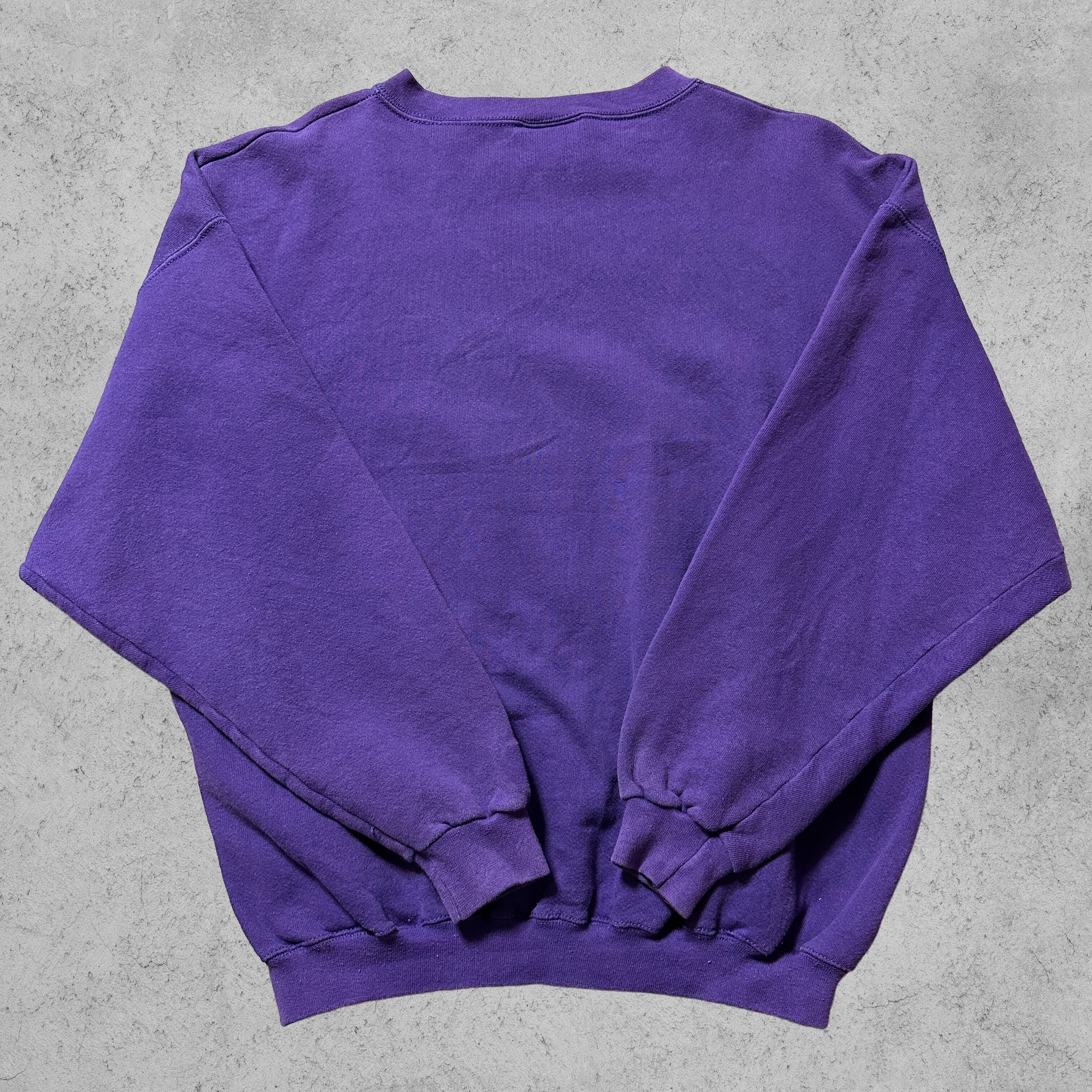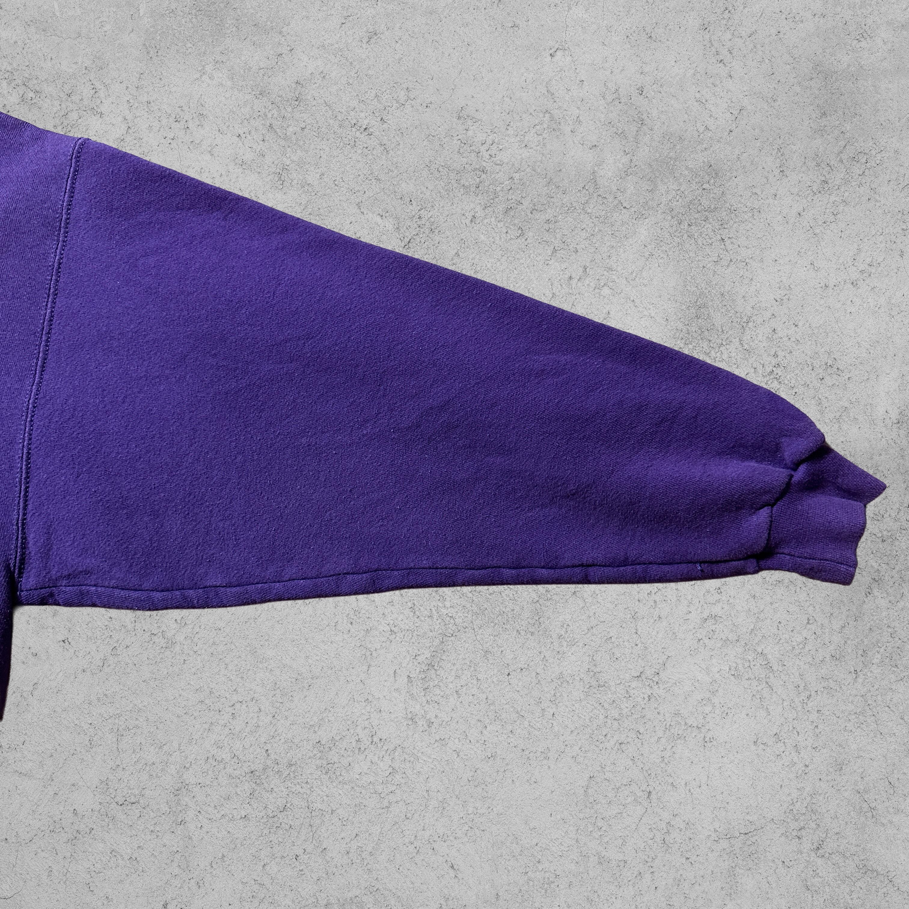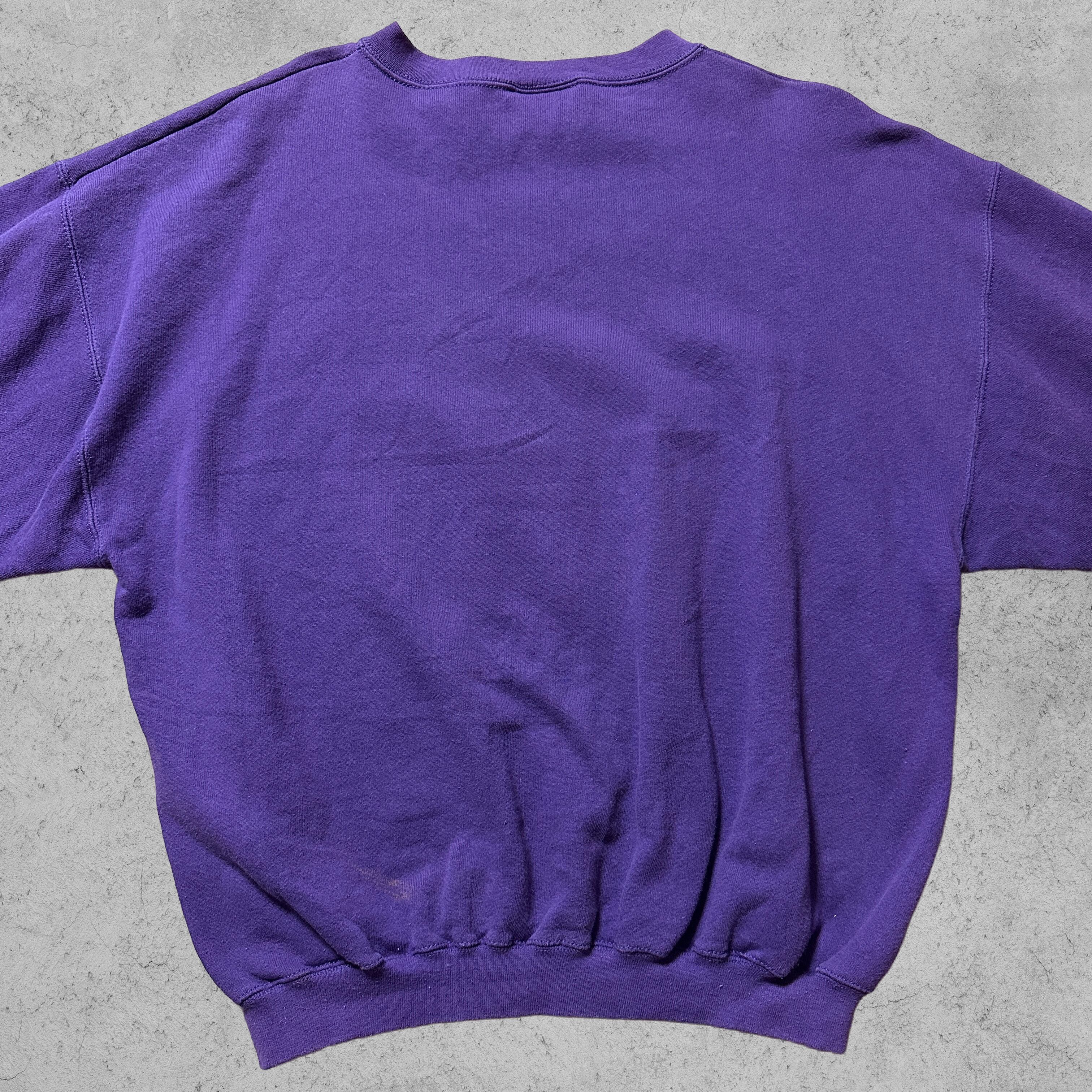 フロントに迫力のカレッジロゴ、タグは Logo Athletic社製 MADE IN U.S.A。素材はコットン95%・ポリエステル5%のしっかりとしたボディで、90s特有のヘビーでタフな質感が魅力です。