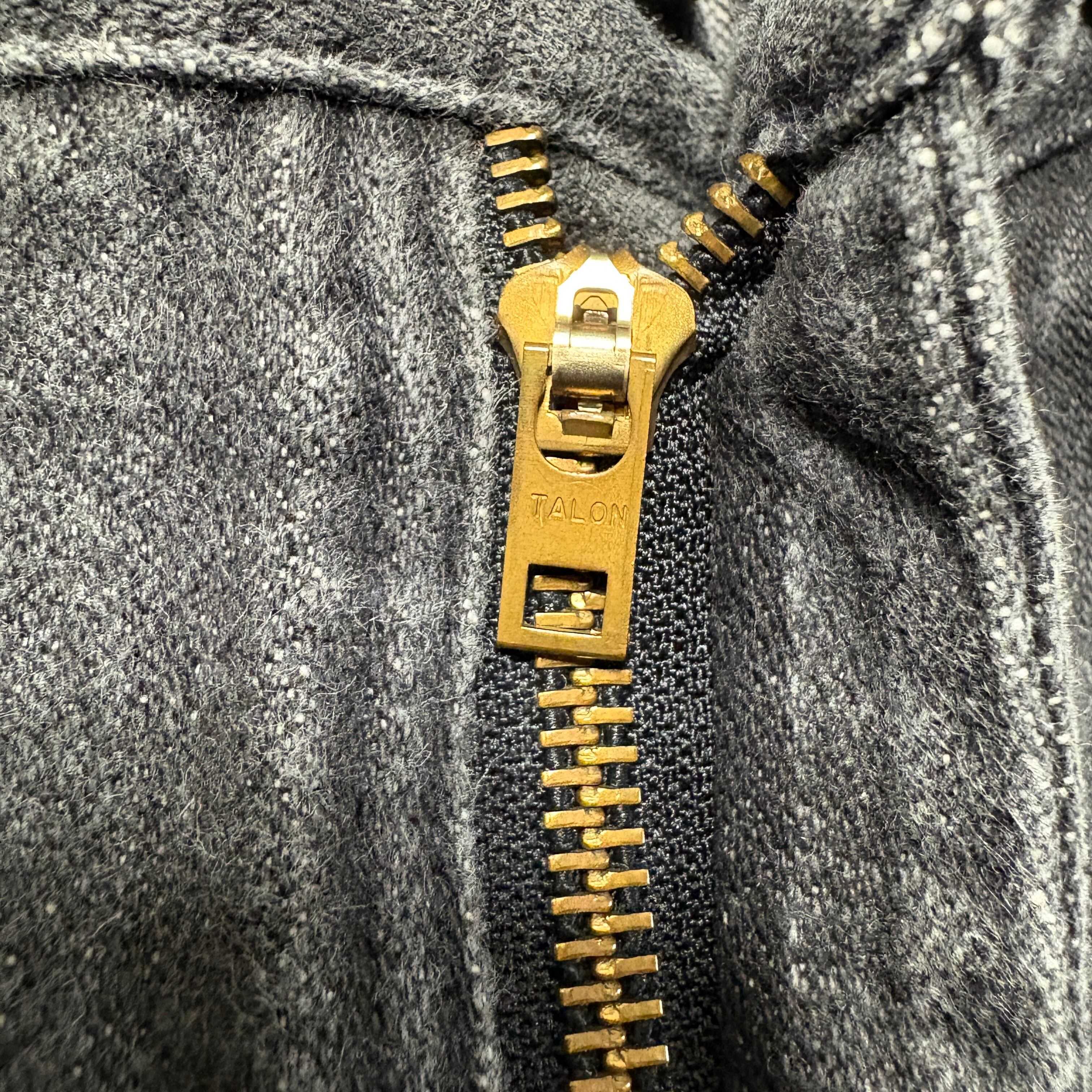 ブロンズのTALONジッパー、レザーパッチ、コインポケットのリベットなど、タフなディテールは健在。バックポケットのイエロー刺繍ロゴがさりげない主張をプラスしてくれます。