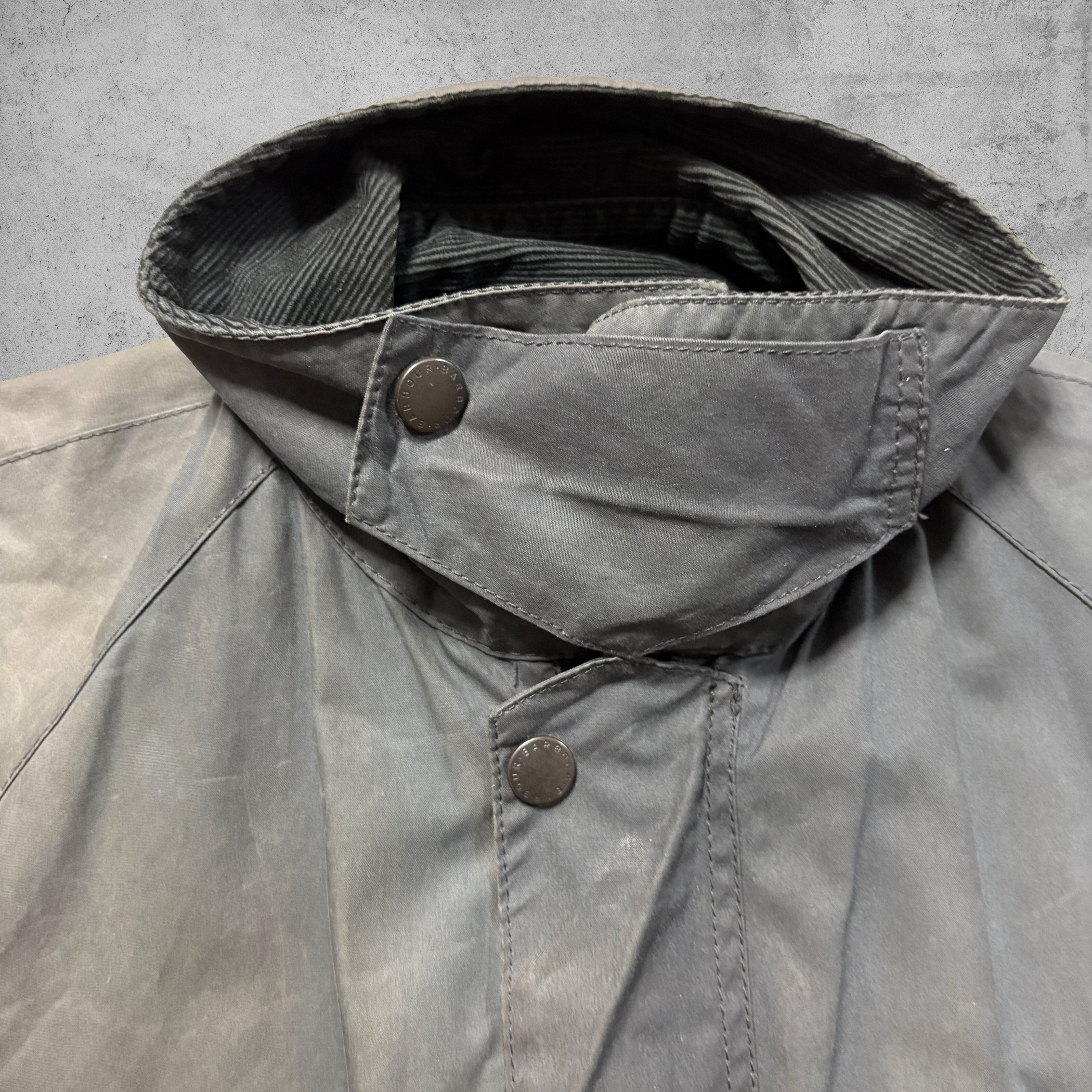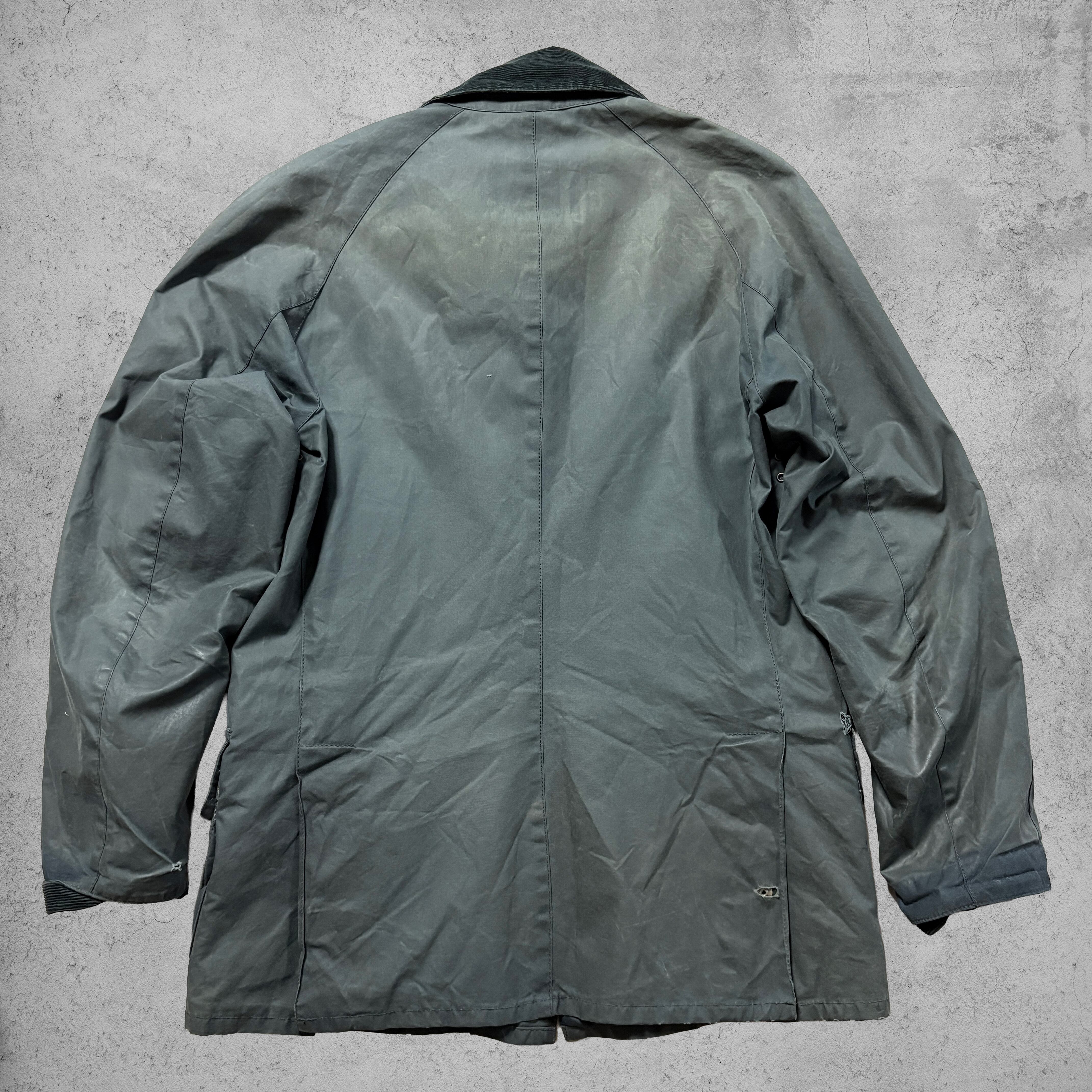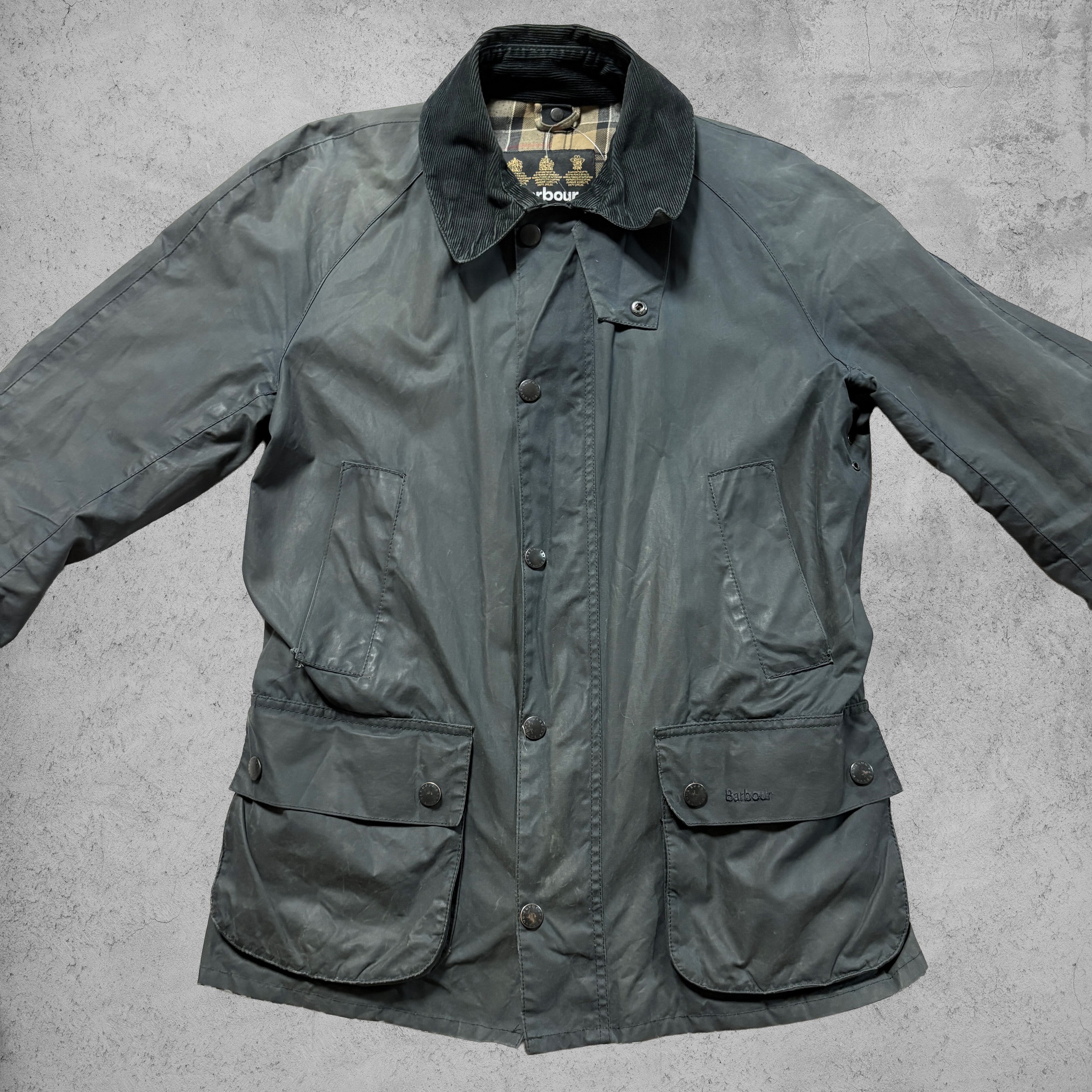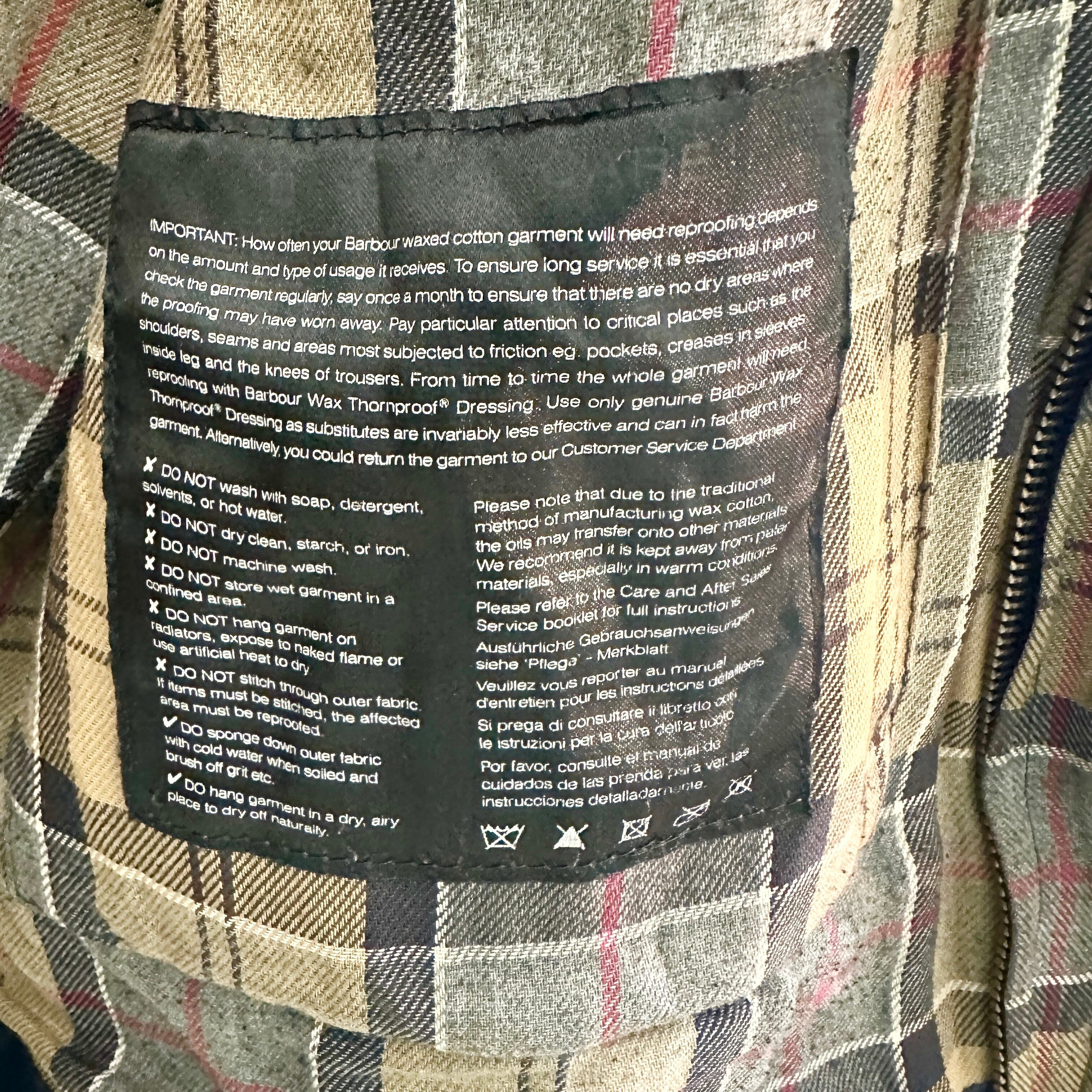 英国を代表するアウトドアブランド Barbour の定番モデル「ビデイル(Bedale)」のオイルドジャケット。タグにはロイヤルワラント(英国王室御用達)の紋章が3つ入っており、90年代後半~2000年代前半頃の一着と推測できる。