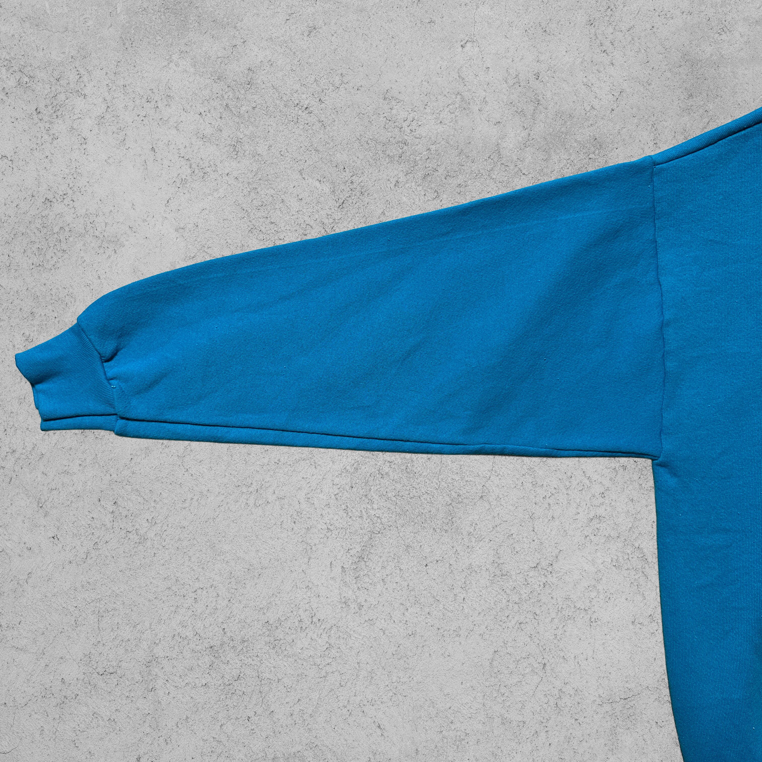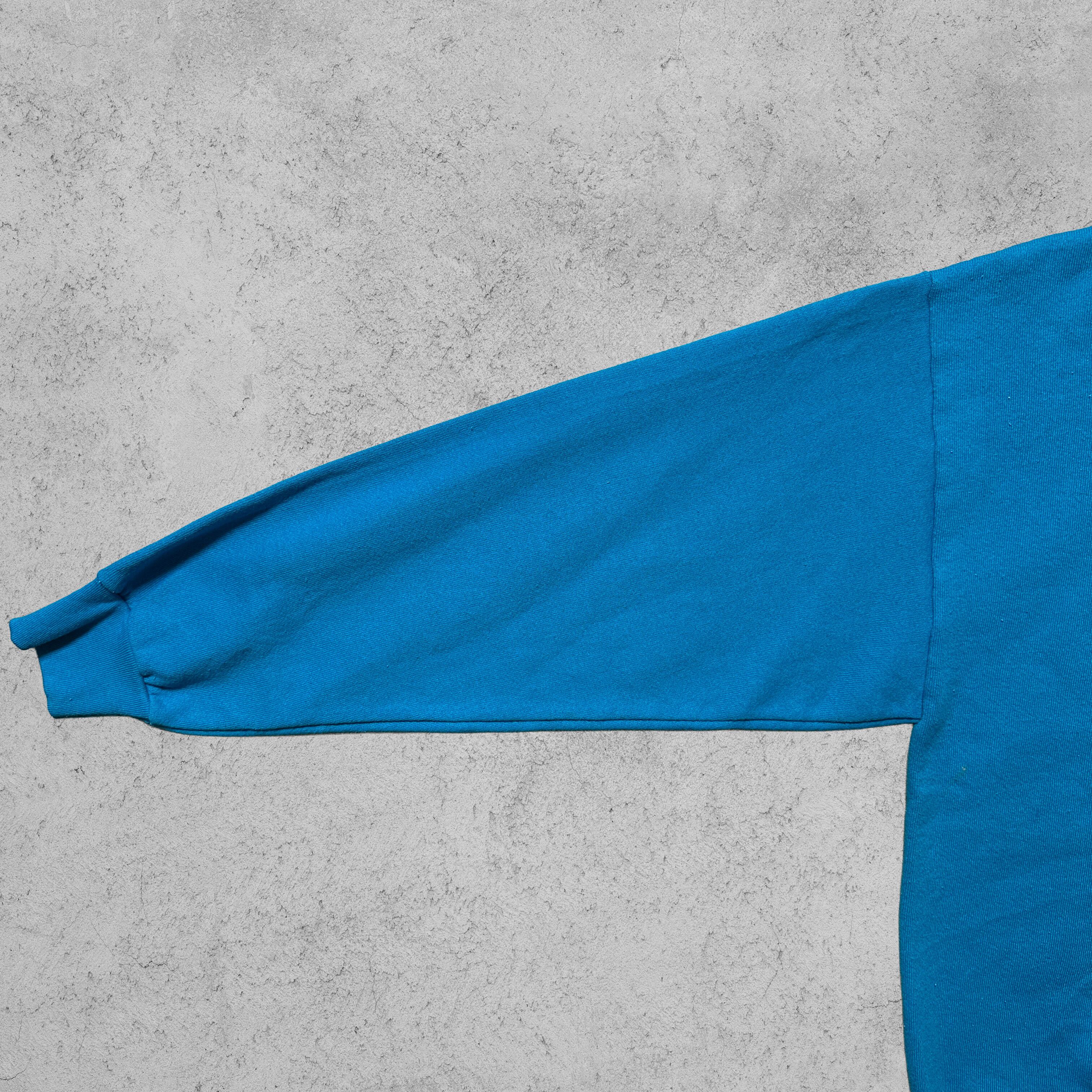 ブルーカラーに映える刺繍モチーフは、古着好きの定番ながら一点物らしい雰囲気。90sアメカジスタイルやストリート、スポーツMIXコーデにハマるアイテム。