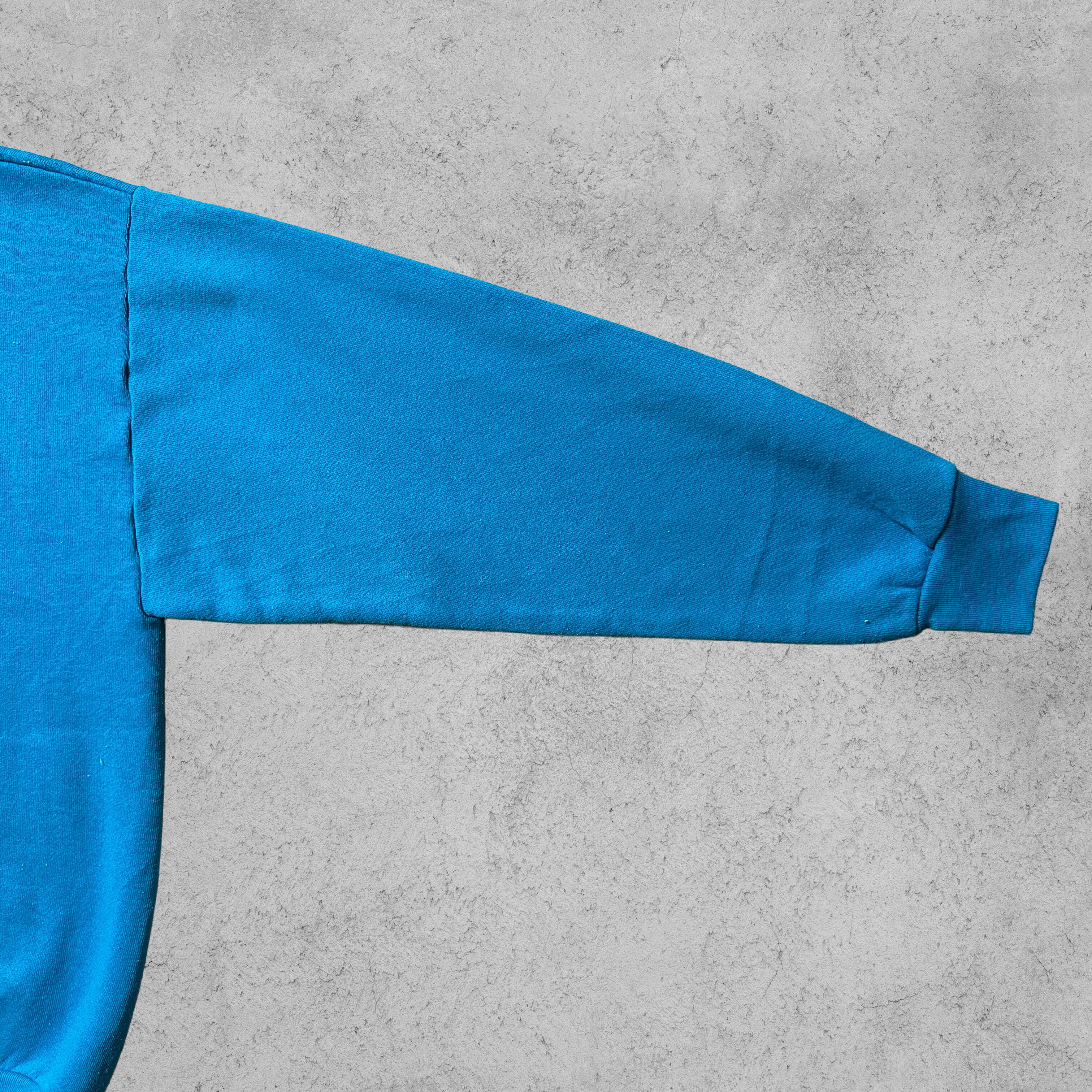 フロントには「SOUTH SHORE HARBOUR」とテキサス州のシルエット刺繍入り。存在感のあるイエローとレッドの刺繍が鮮やかなブルーボディに映える90sらしい一着。