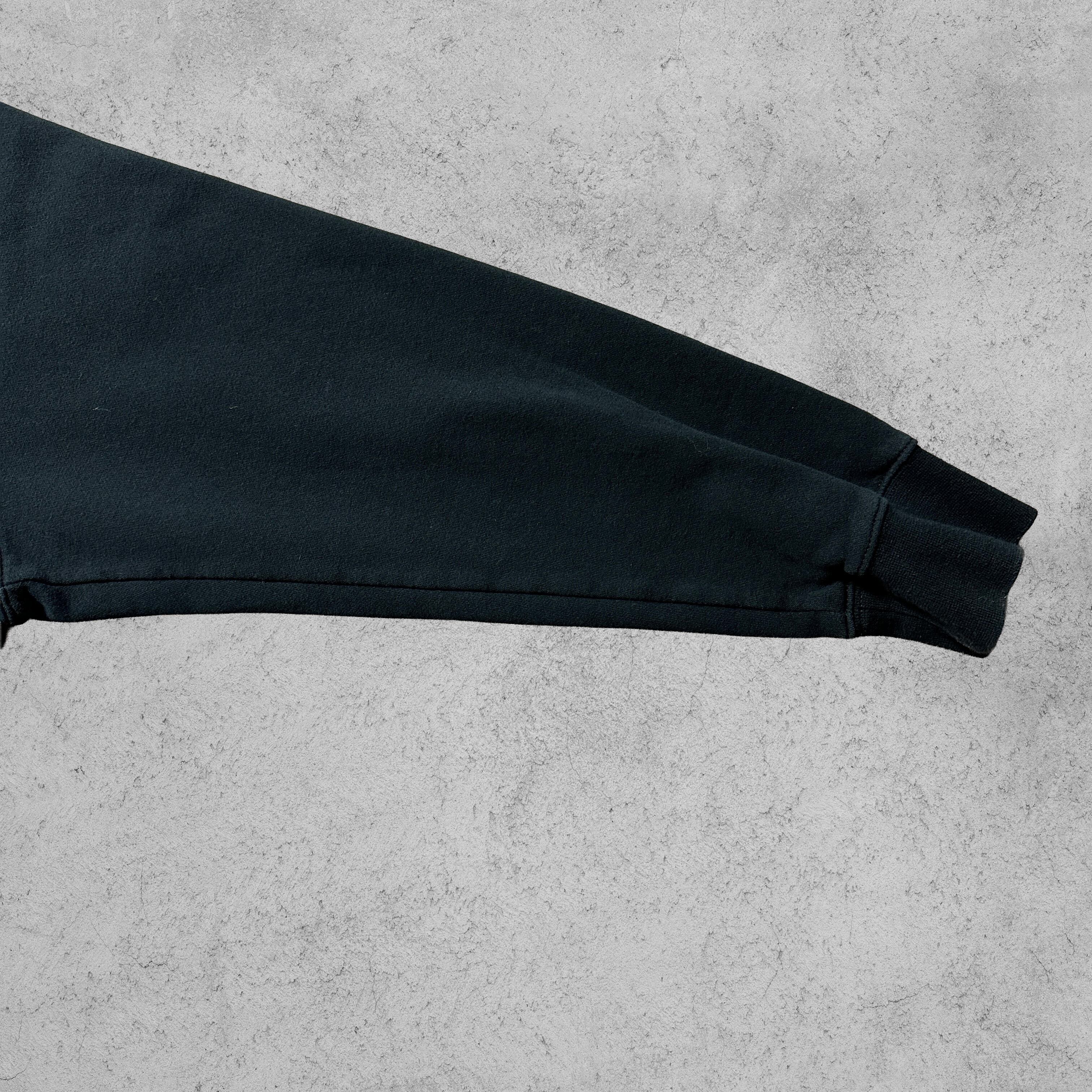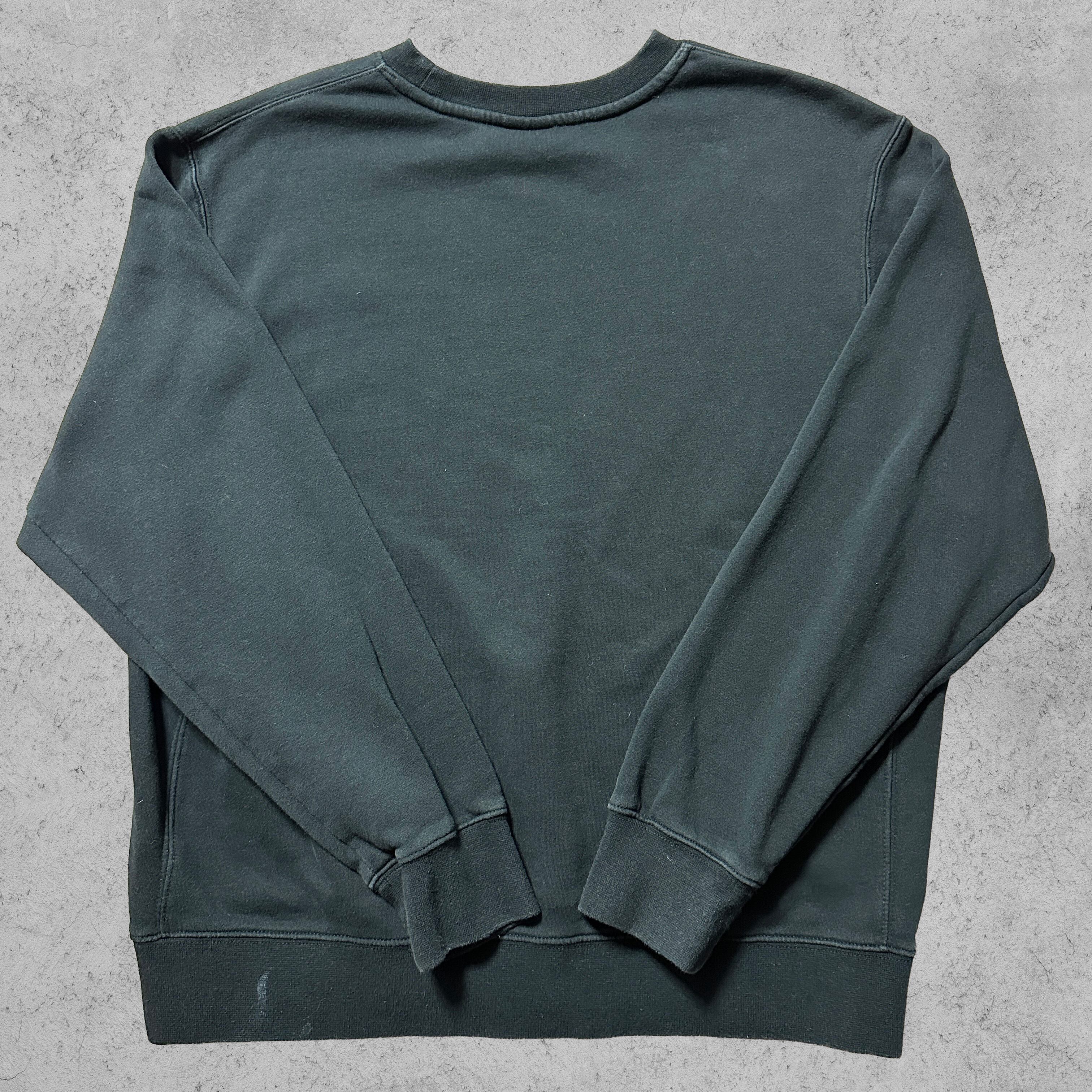 ナイキの定番ワンポイントロゴ刺繍入りブラックスウェット。胸元にシンプルなスウッシュロゴをあしらったミニマルデザインで、ストリートからスポーツ、デイリーまで幅広く使える一枚。しっかりとしたコットン×ポリエステルのボディは程よい厚みと柔らかな裏起毛で、秋冬に頼れる着心地。定番のブラックカラーは合わせやすく、古着でも高い人気を誇る。
