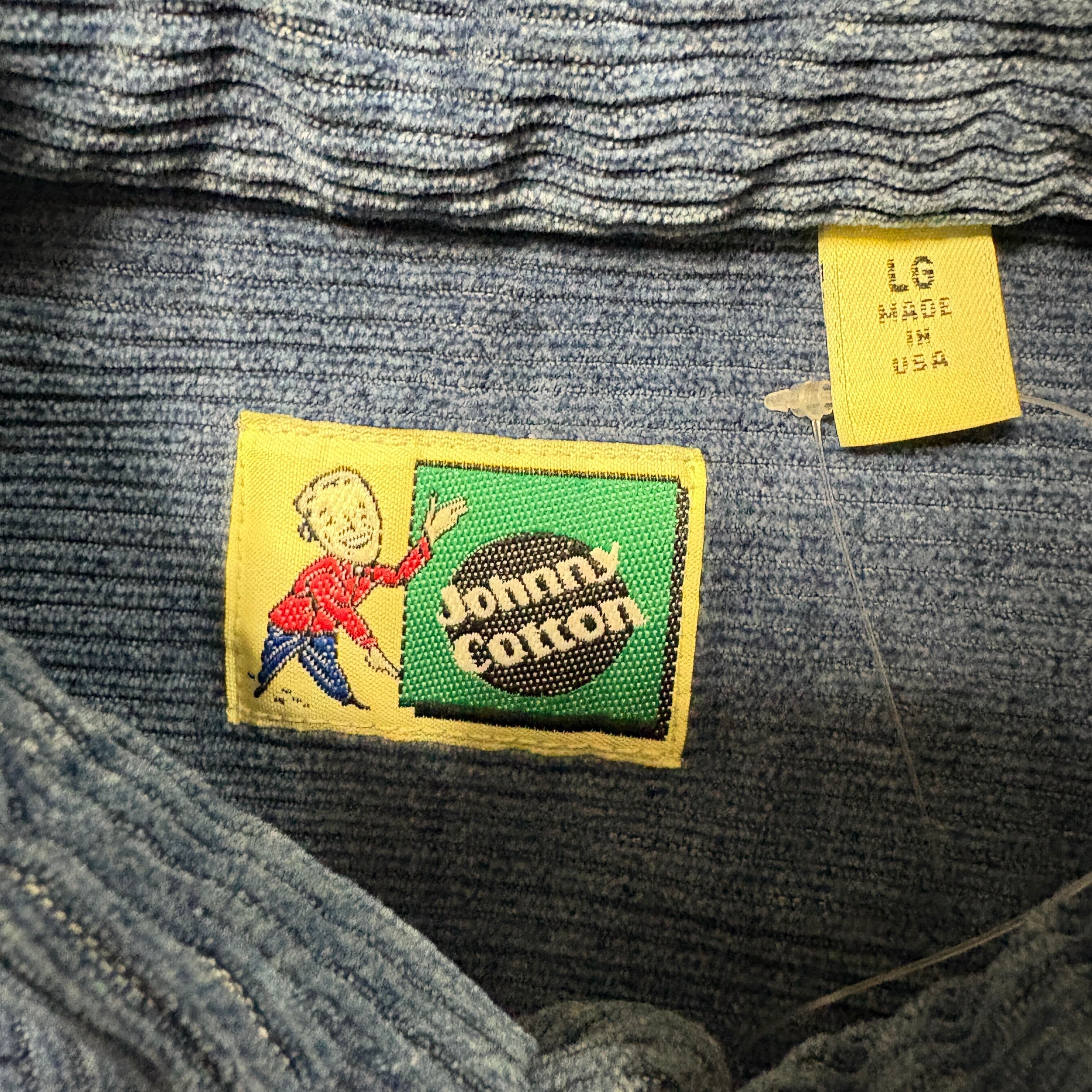 アメリカ製「Johnny Cotton」のコーデュロイシャツ。タグ表記は Lサイズ。素材はコットン100%で、太畝ではなく程よいピッチのコーデュロイ生地が特徴。