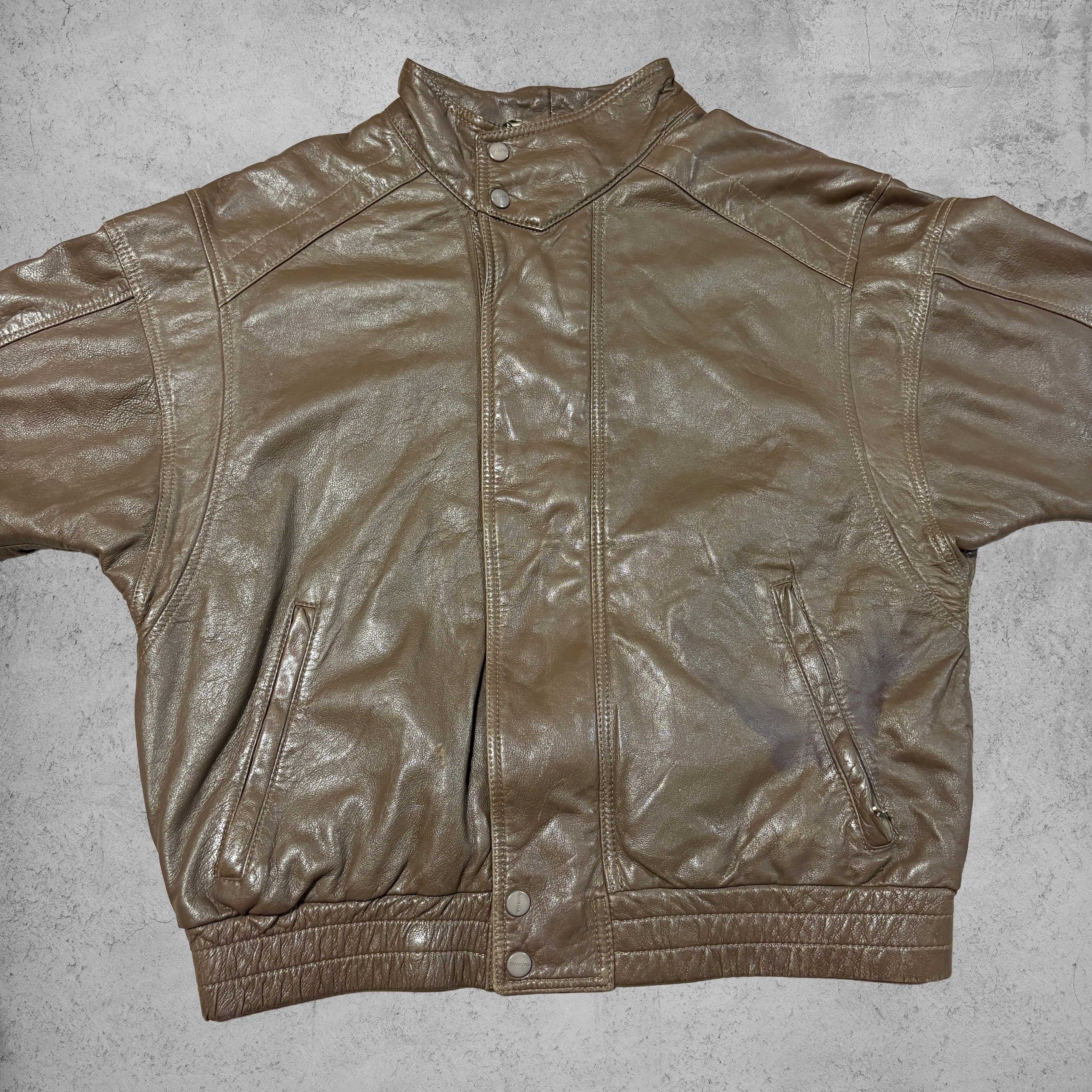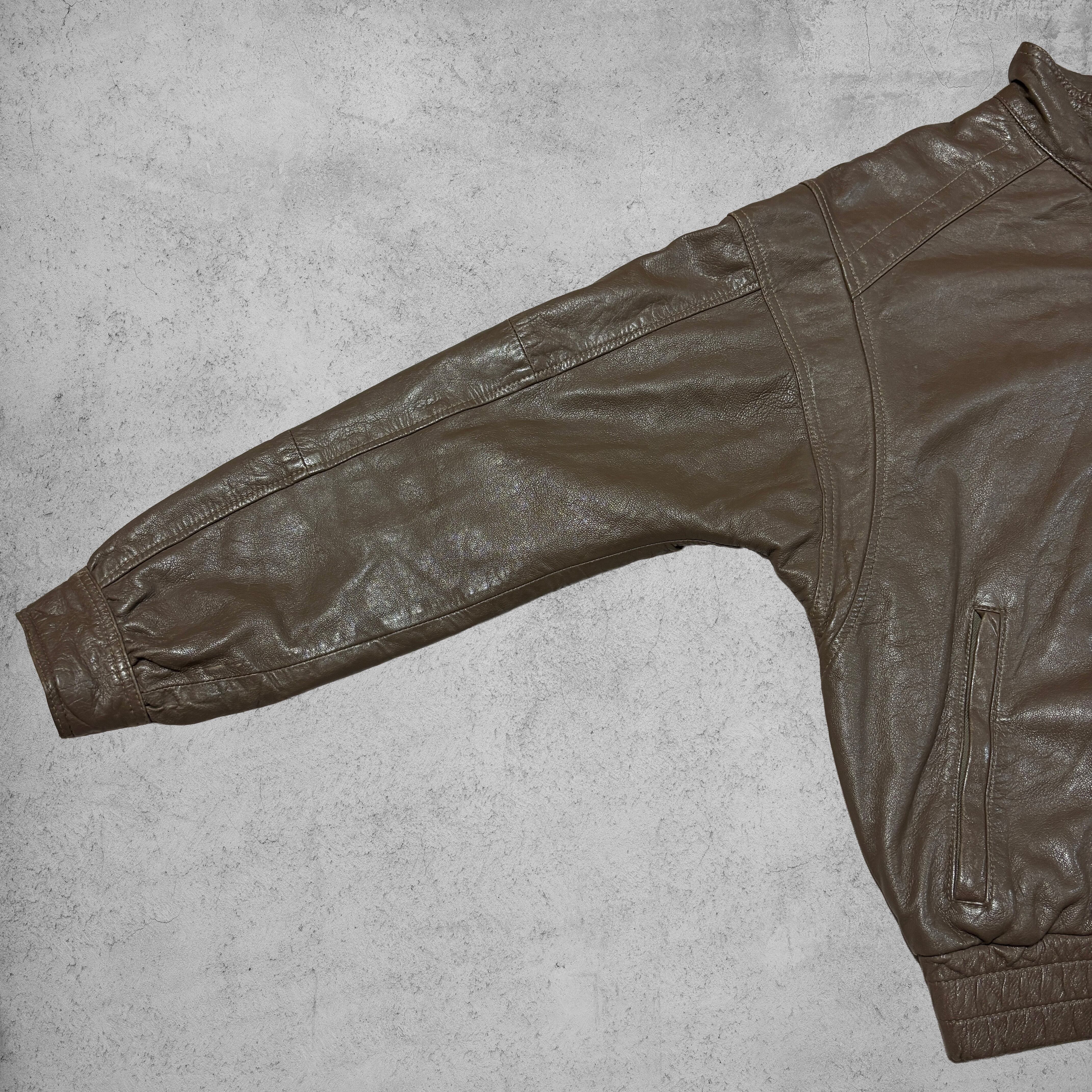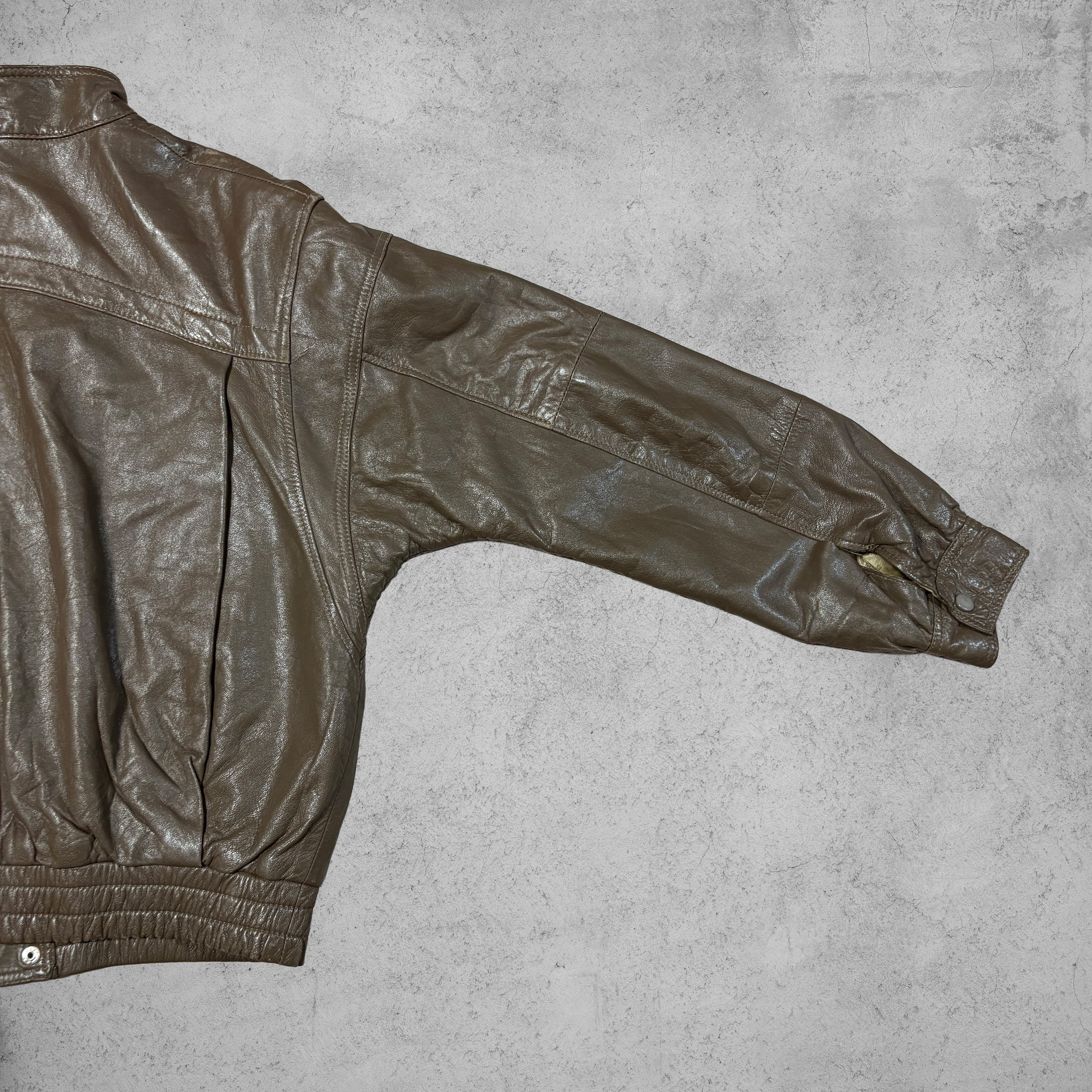 スタンドカラーやドロップショルダー、裾と袖口のギャザー仕様など、90’sレザー特有のゆるさとボリューム感も◎。ジップはYKK製、そして「Made in Portugal」のタグ付きで、細部にまでこだわりを感じられる仕上がり。