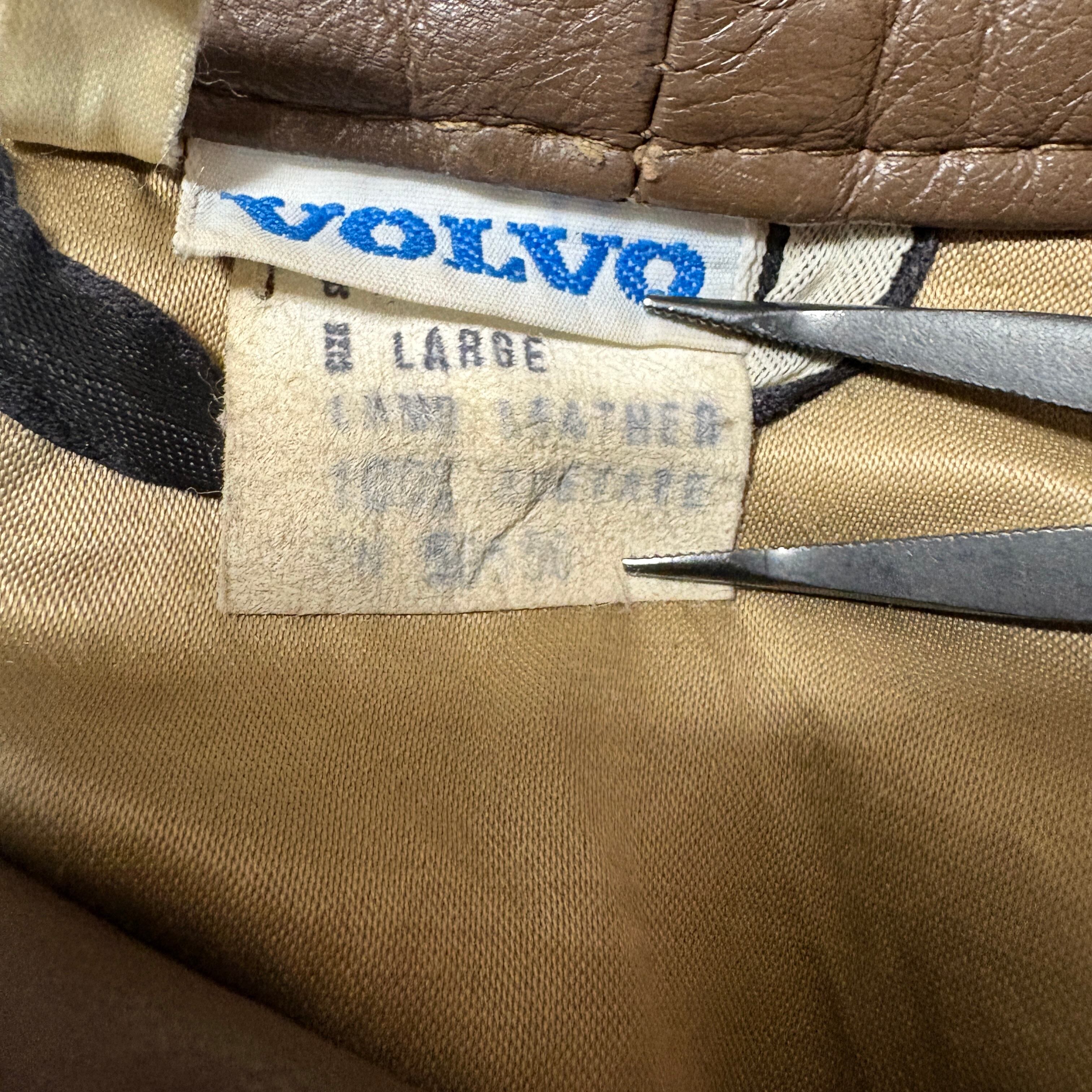 そのVOLVOのレザージャケットは、90年代頃に製造されたとみられる一着。上質なカウレザーを使用し、しっとりとした質感と重厚な存在感が魅力。ボタンには「VOLVO」の刻印が入り、ブランドの世界観をさりげなく主張している。
