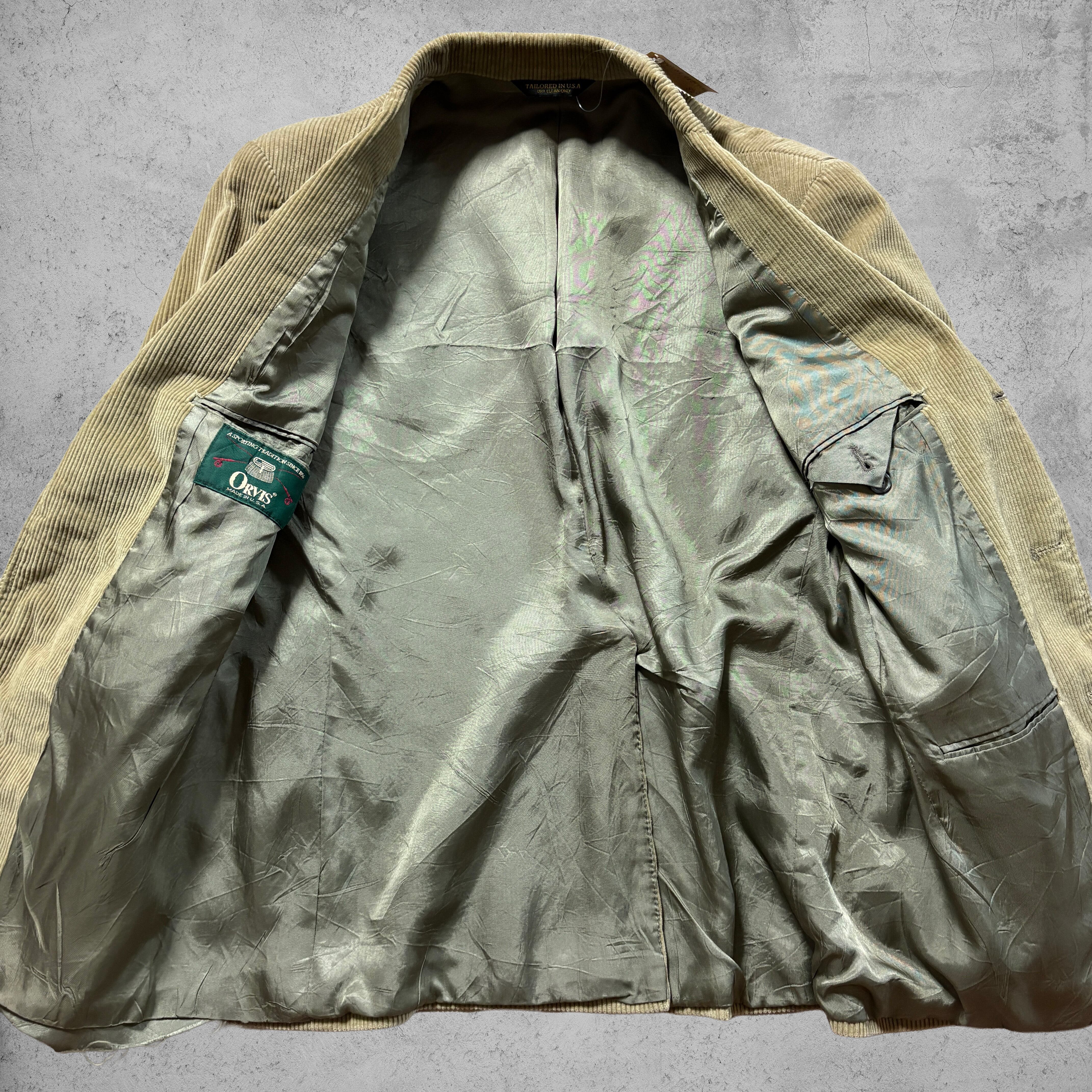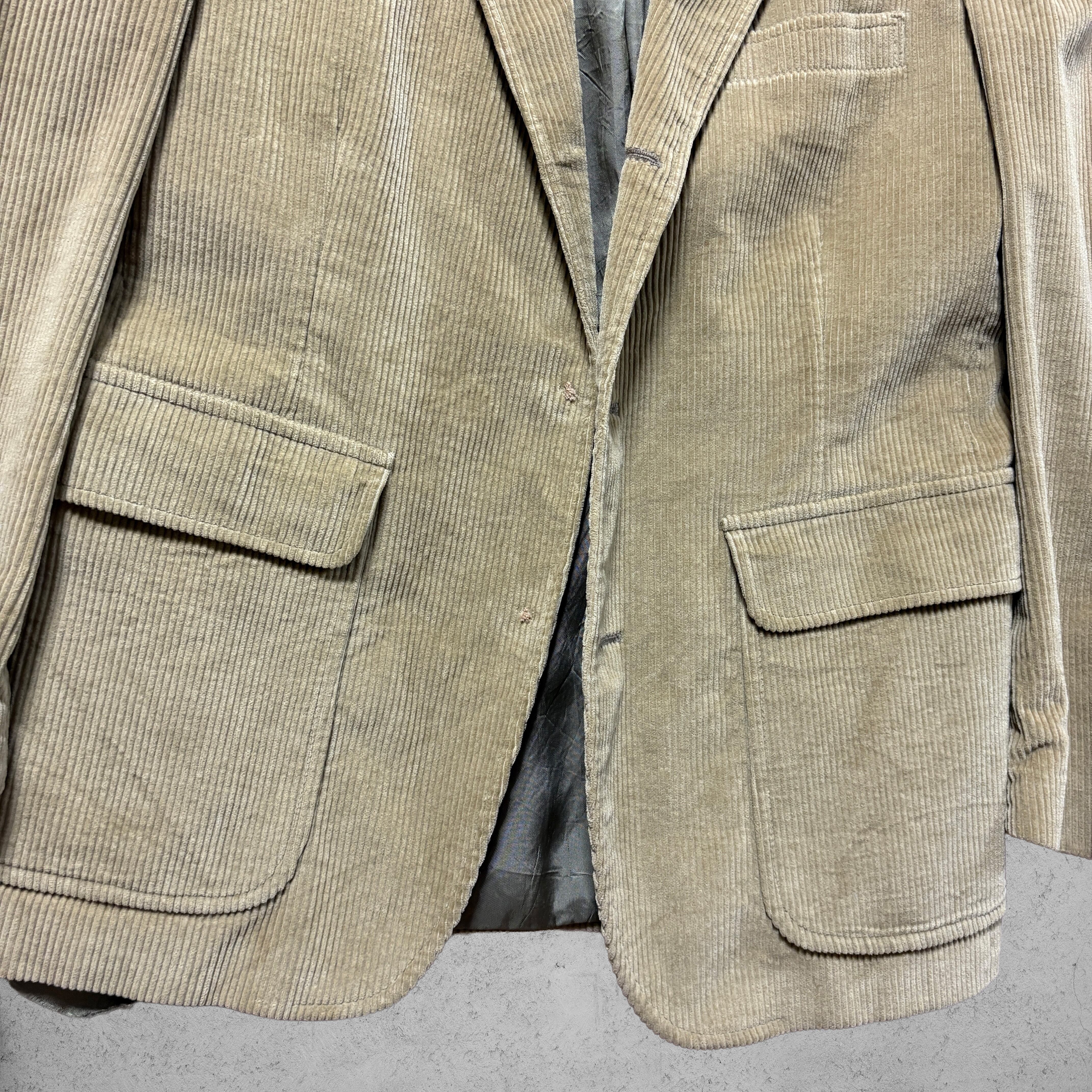 上質なベージュコーデュロイ生地を使用し、袖にはブラウンのスエード・エルボーパッチを配置。
