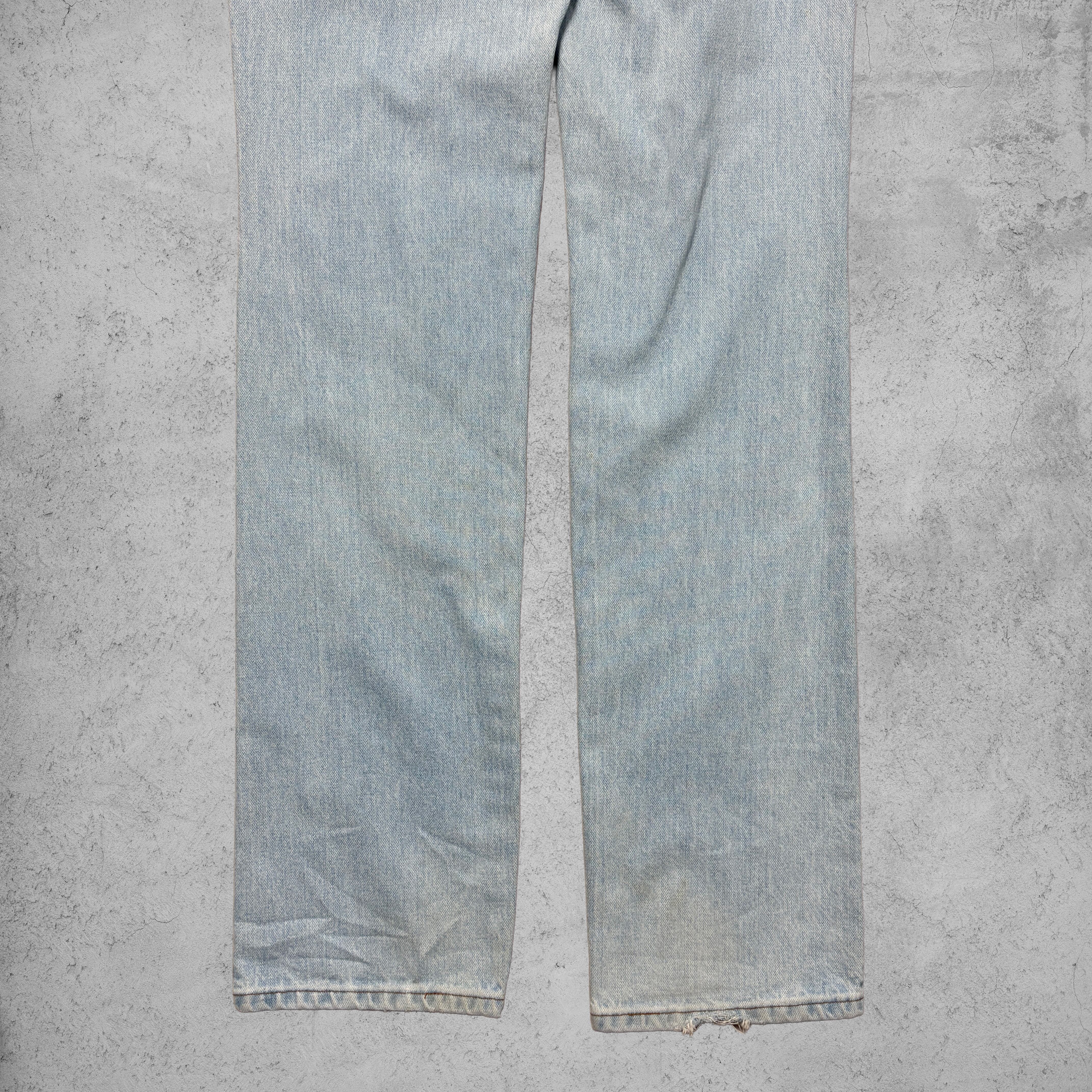 ややハイウエスト気味の作りに、淡いライトブルーのブリーチデニムが90’sらしい雰囲気を漂わせる一本。
