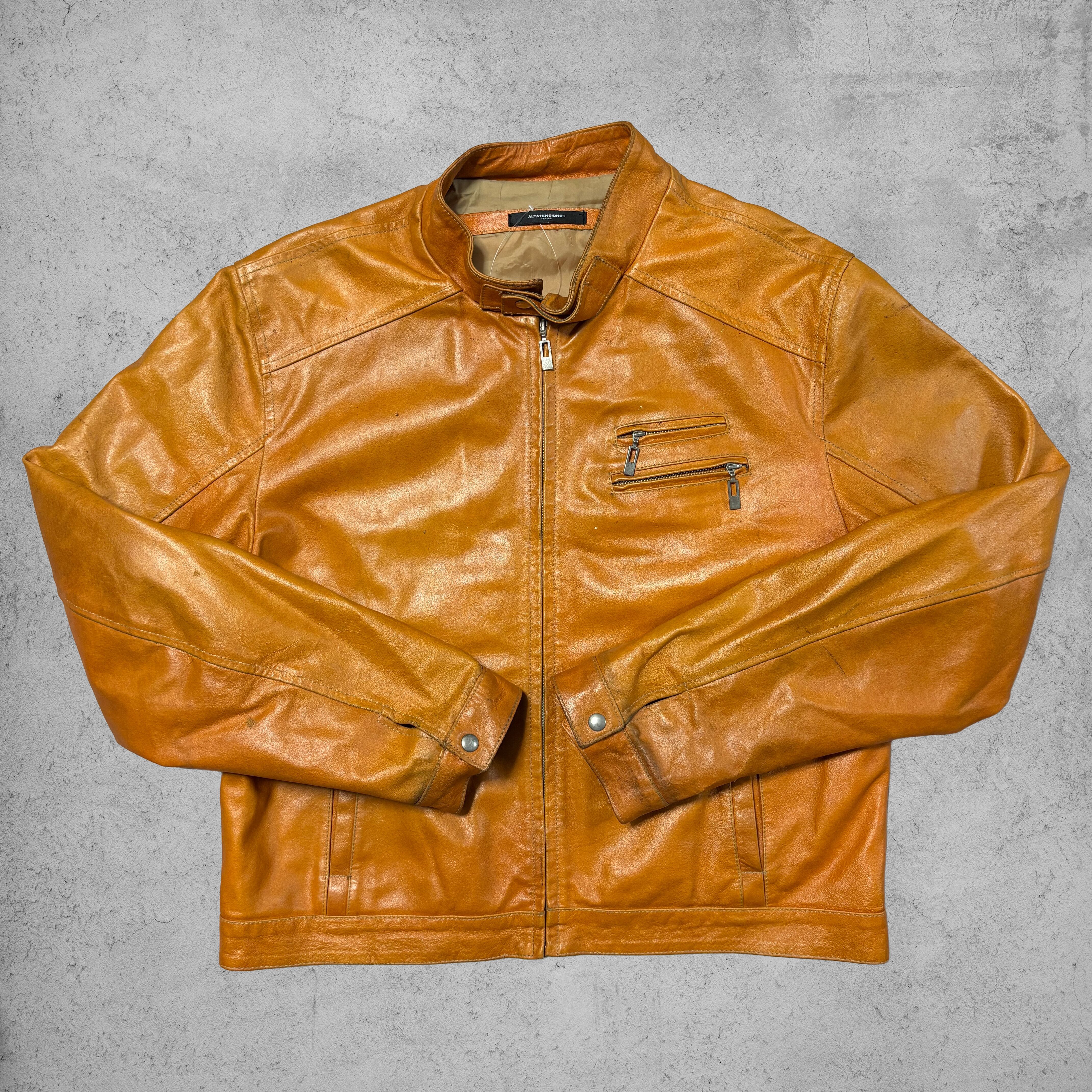 00s 【ALTATENSIONE】 Camel leather jacket size XXL