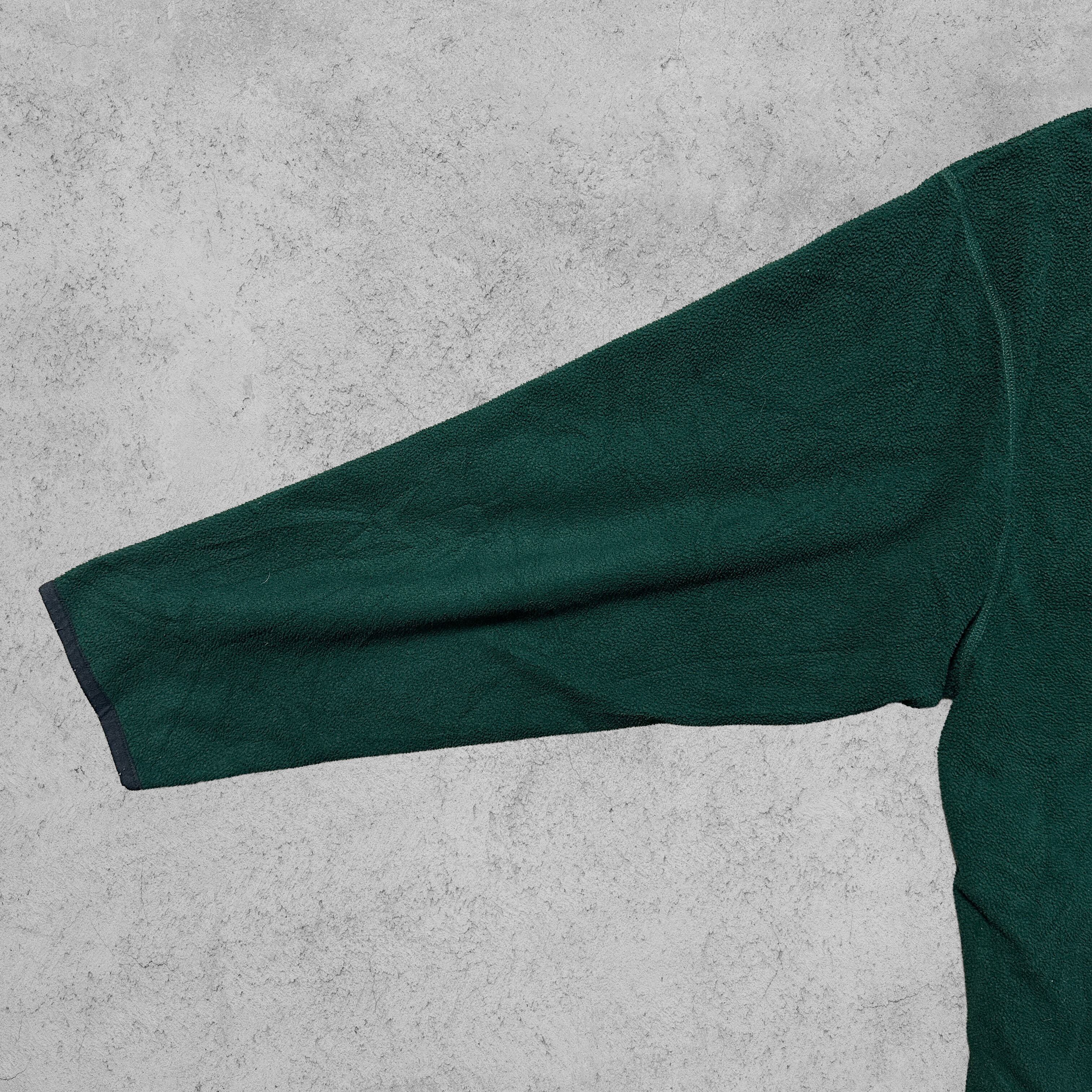 今回のフリースジャケットは、深みのあるフォレストグリーンカラーに、胸元のCHAPS RALPH LAURENロゴ刺繍が映える一枚。バックには赤い“CRL”タグが配され、控えめながらも存在感のあるデザインになっている。フルジップ仕様で着脱がしやすく、襟元まで暖かく包み込むスタンドカラータイプ。