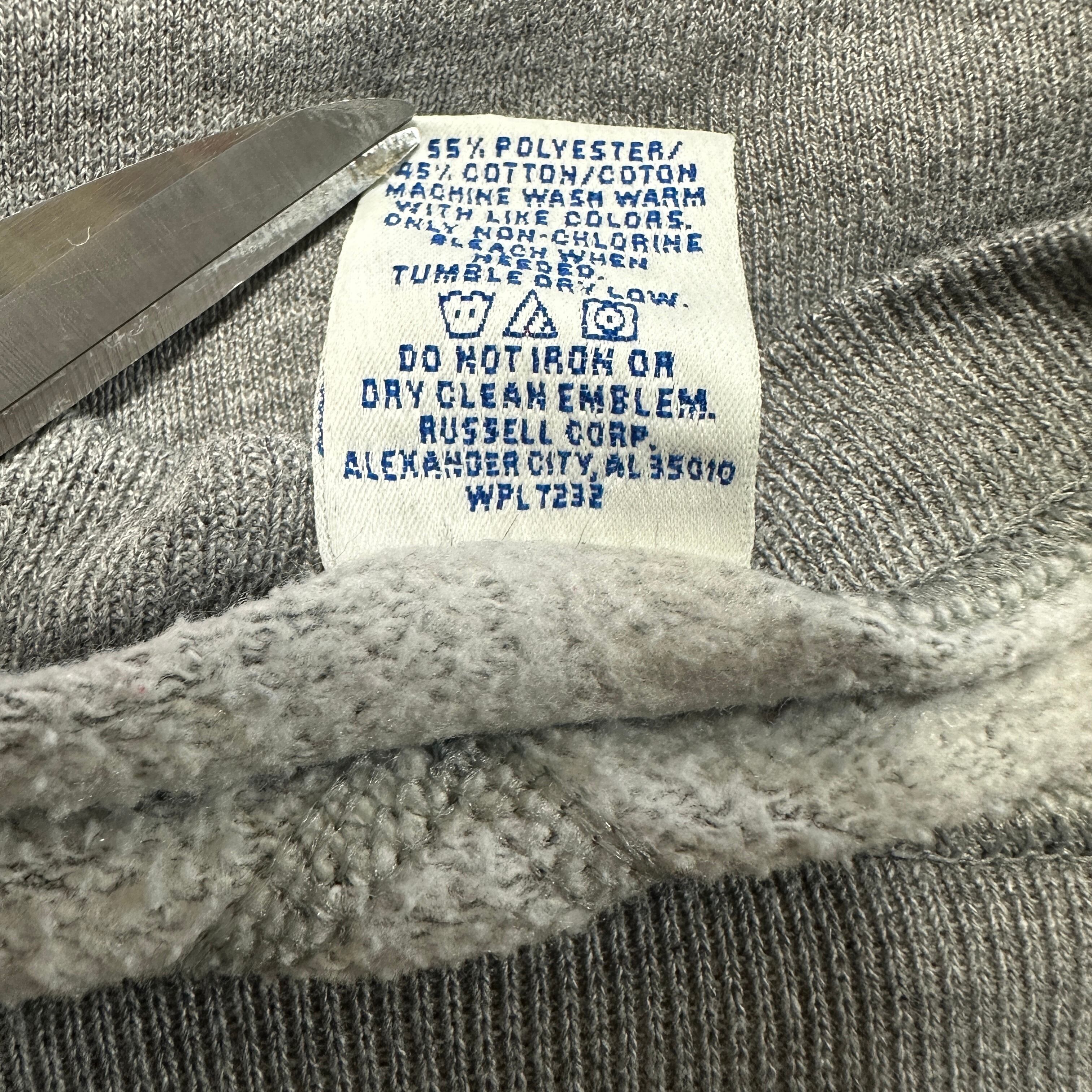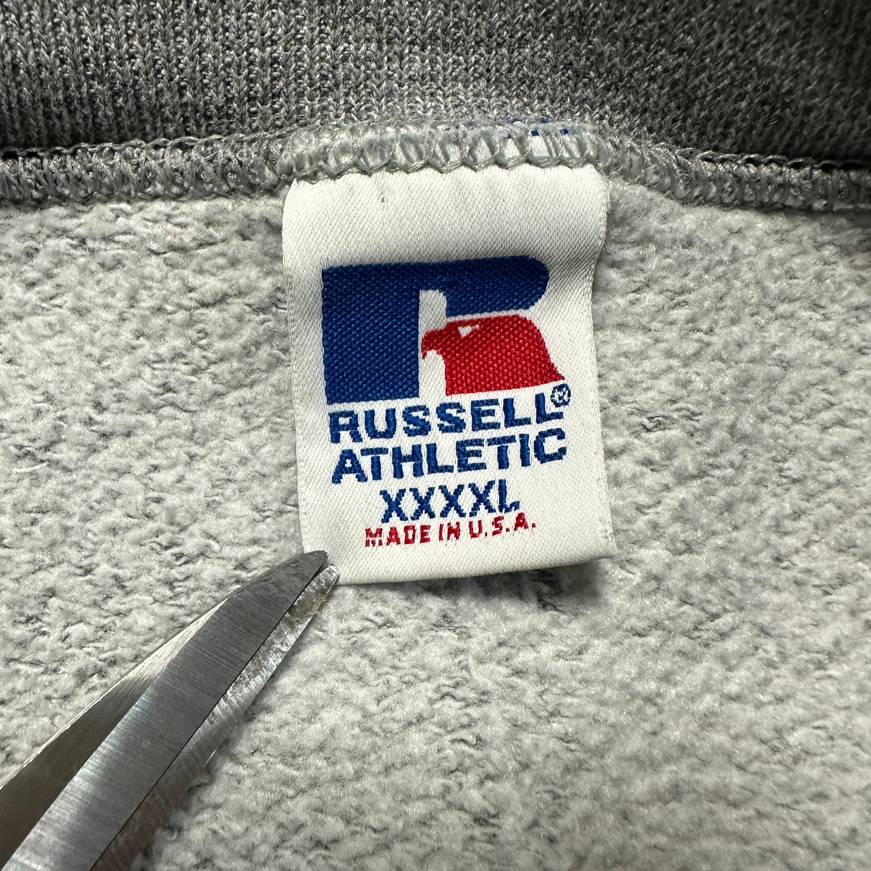 タグ表記「MADE IN U.S.A.」「RUSSELL CORP, ALEXANDER CITY, ALABAMA」から、90年代前半〜中期頃の製造と推測される。