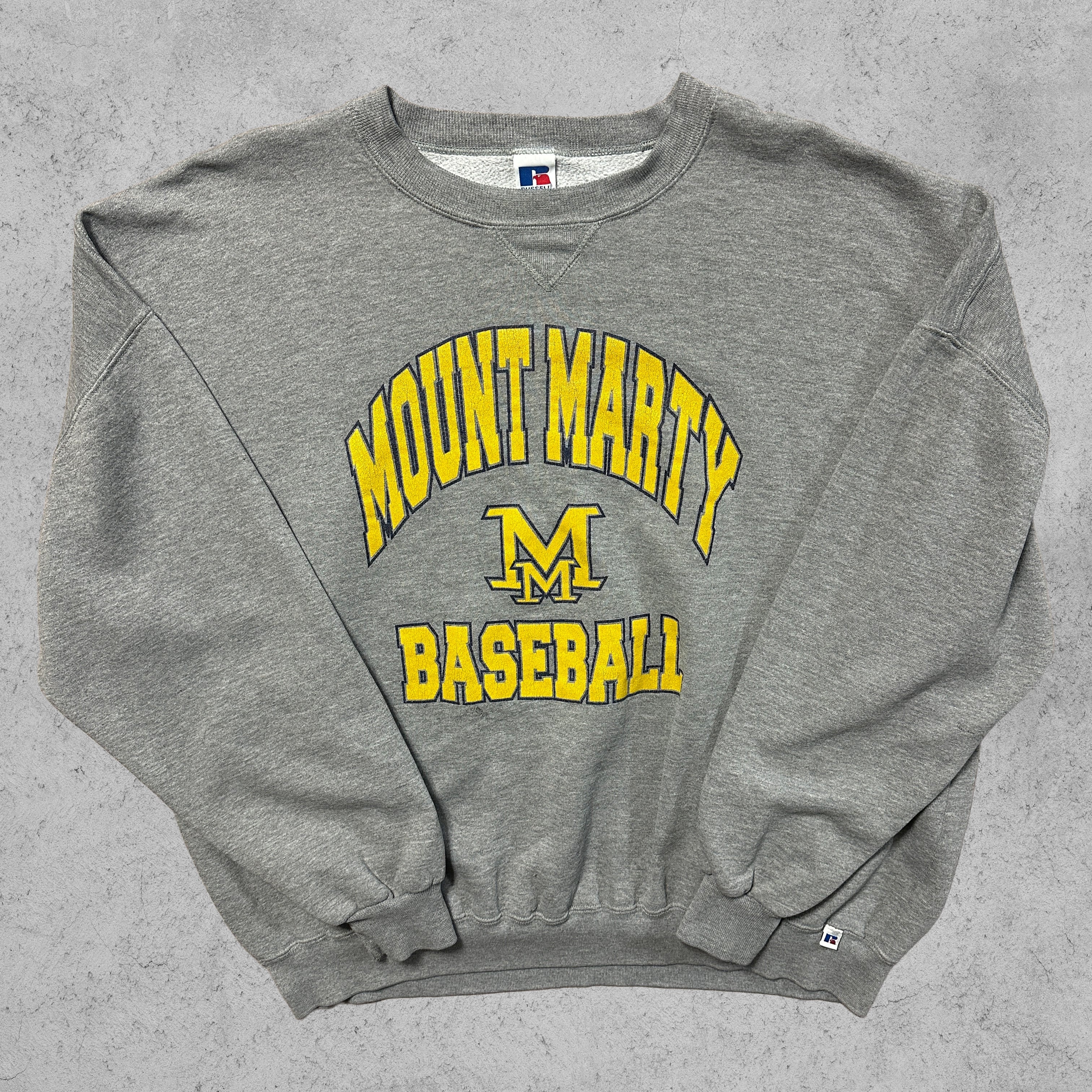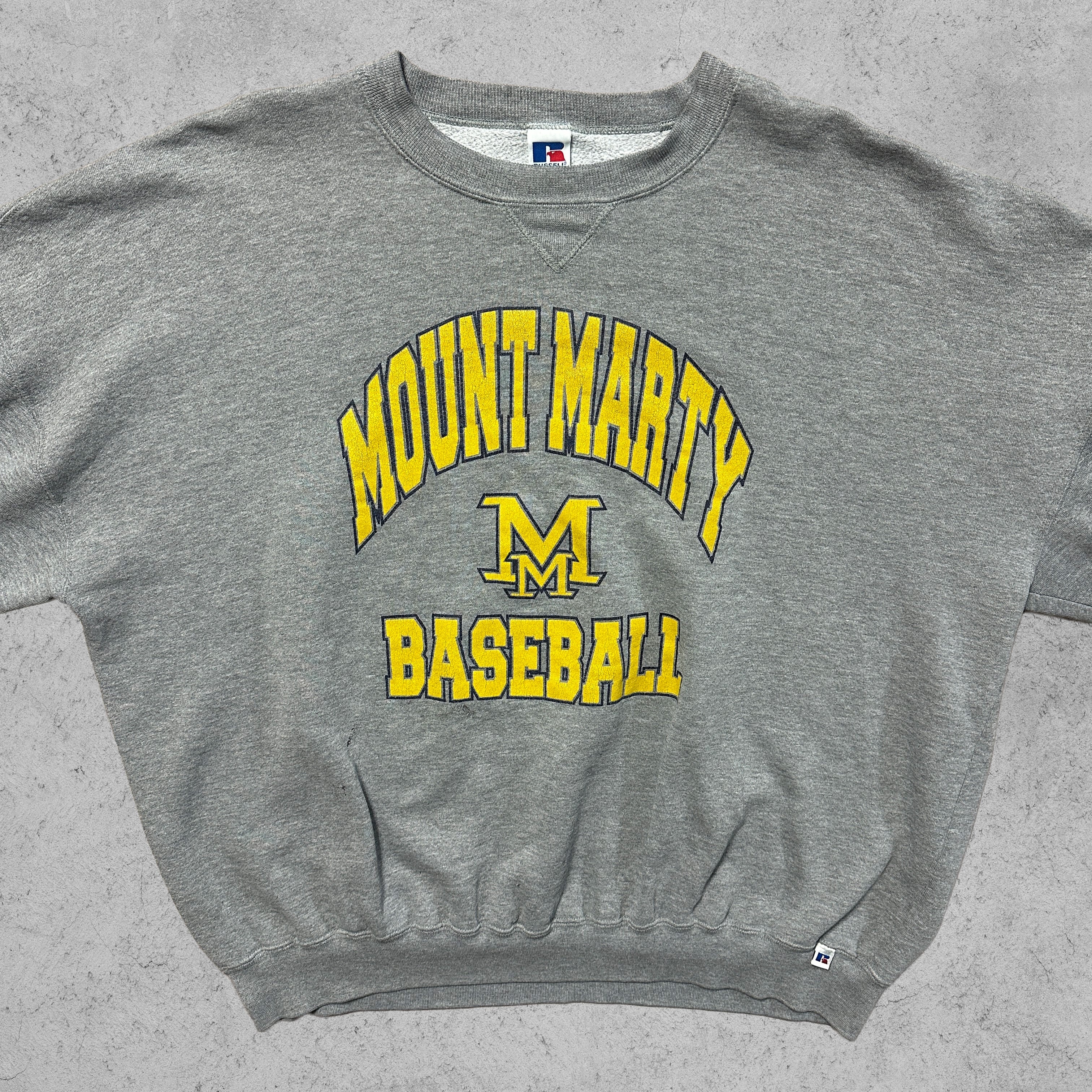 本品は「MOUNT MARTY BASEBALL(マウントマーティ大学・野球チーム)」のカレッジスウェット。