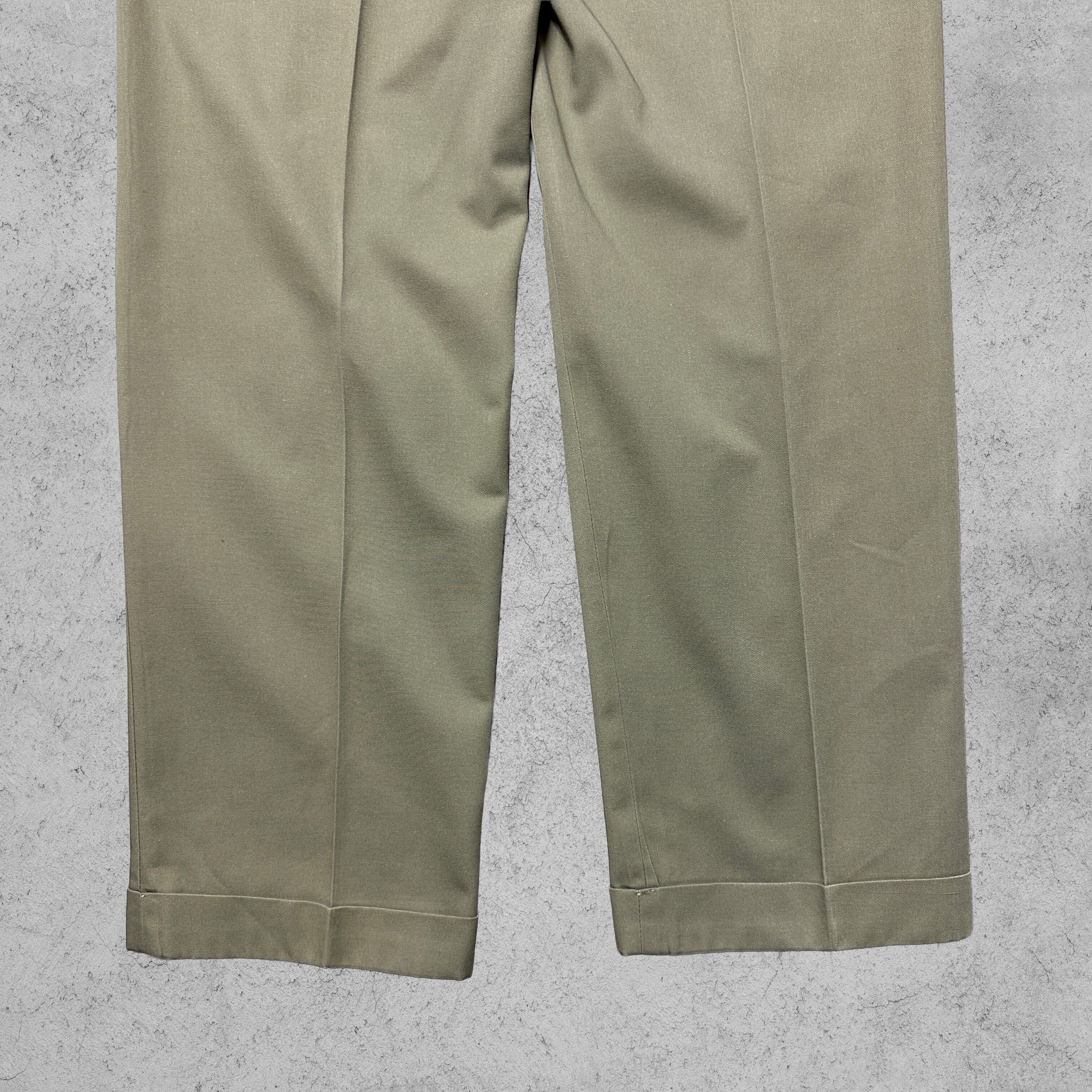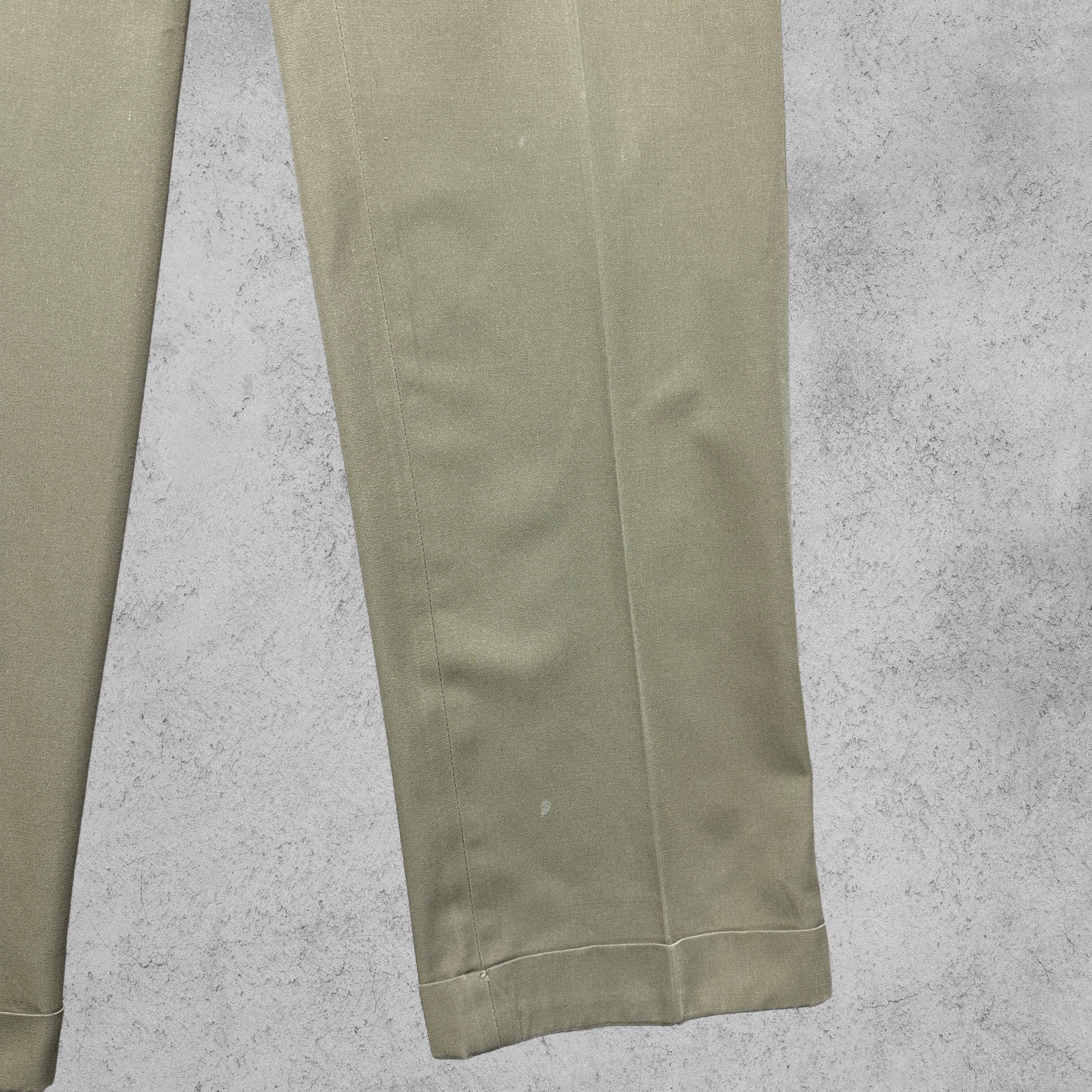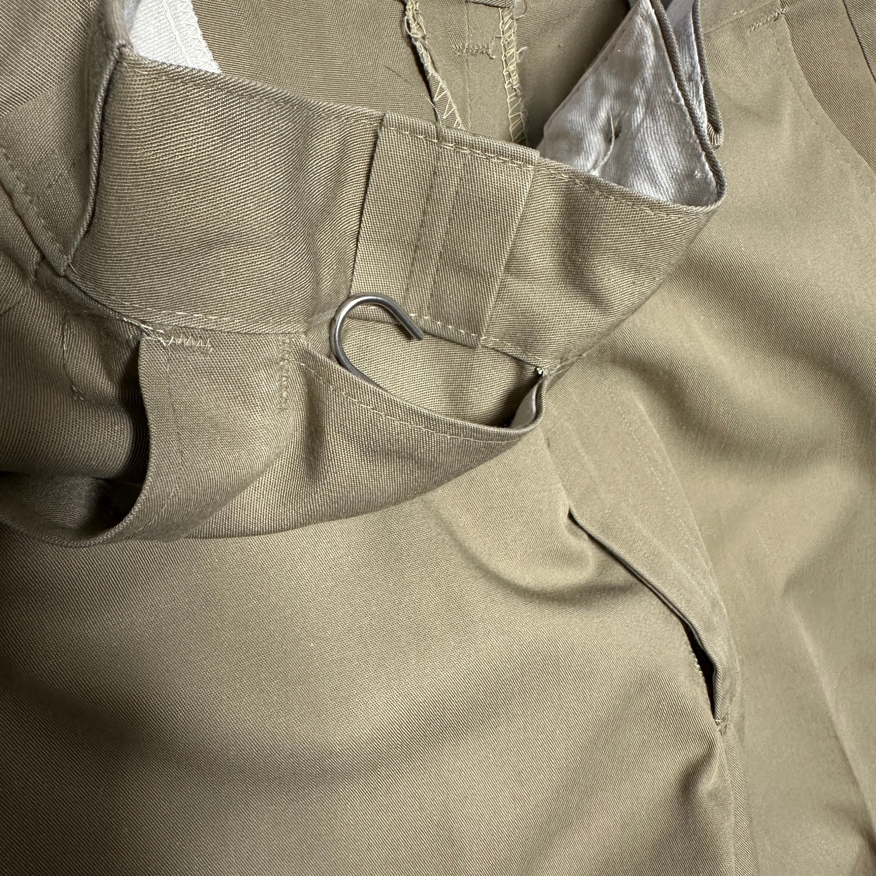 ストレートシルエットで、スニーカーにも革靴にも合わせやすく、古着のワークパンツにありがちな無骨さを抑えたクリーンな表情が魅力。ミリタリー・ワーク・アメカジスタイルに自然に馴染む、使い勝手の良いヴィンテージスラックス。