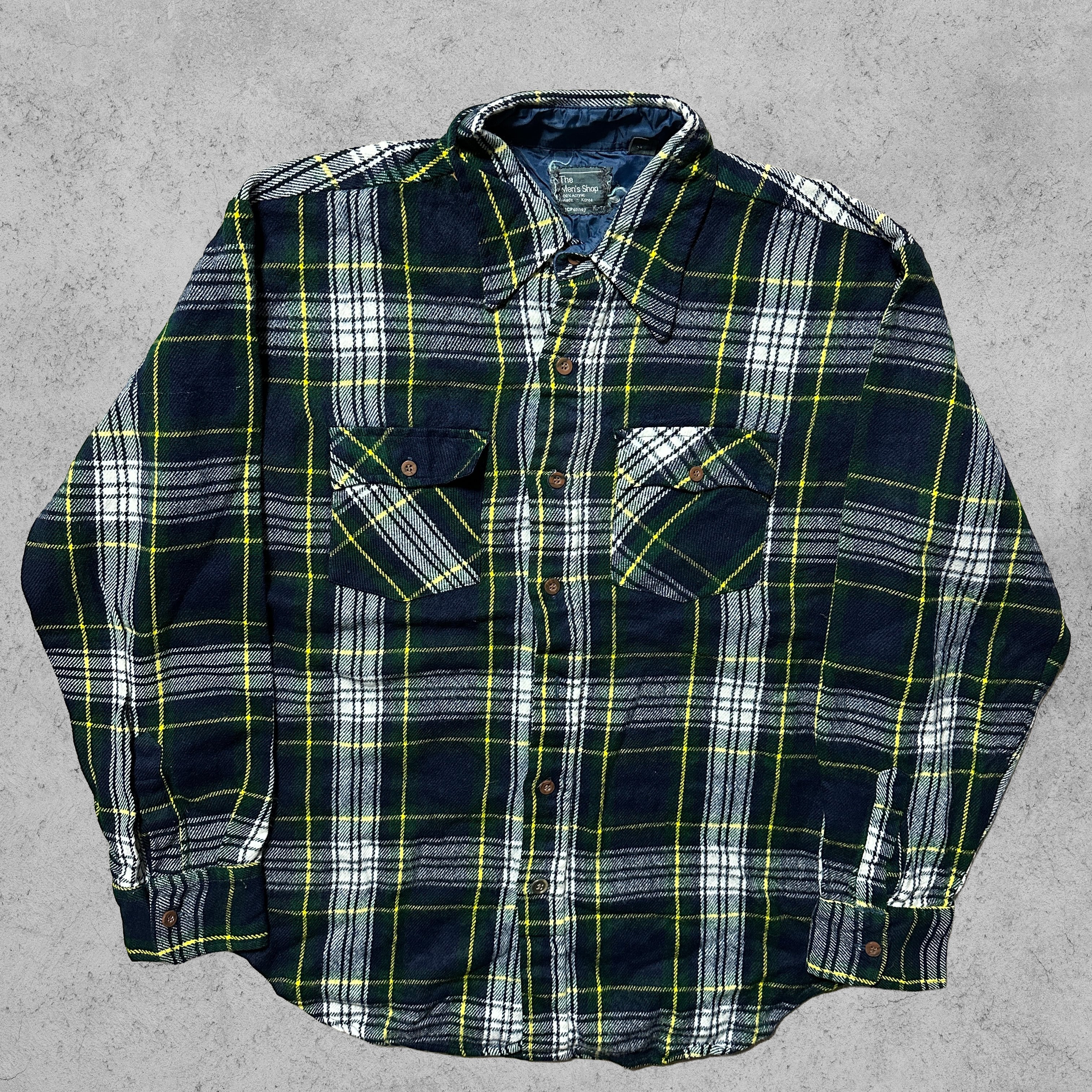 The Men’s Shopは、アメリカの老舗百貨店JCPenneyが展開していたメンズ向けのハウスレーベル。日常着としての実用性と、当時らしいアメカジ感のあるチェックやワークテイストのアイテムを幅広く揃え、アメリカの一般層を中心に支持されてきた。