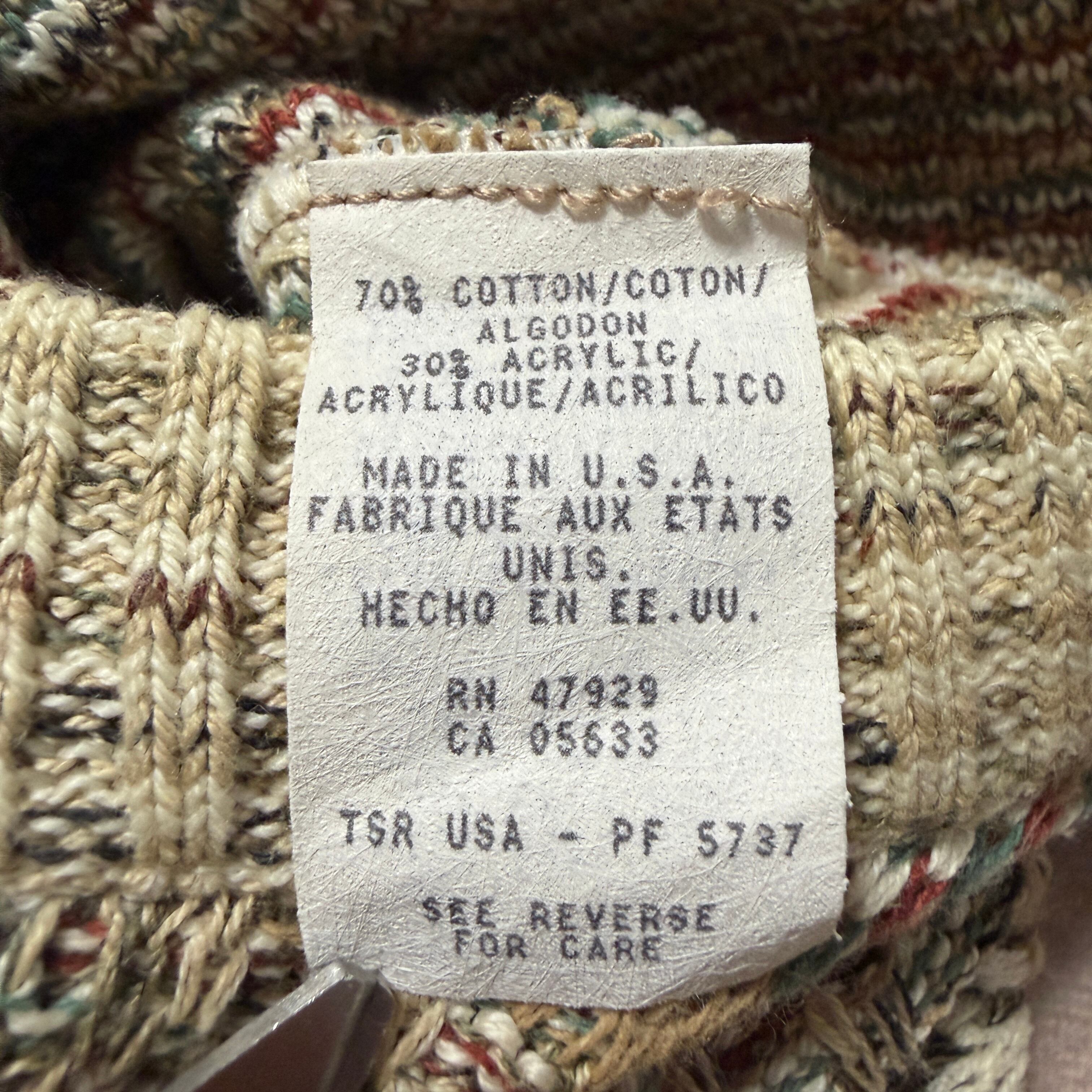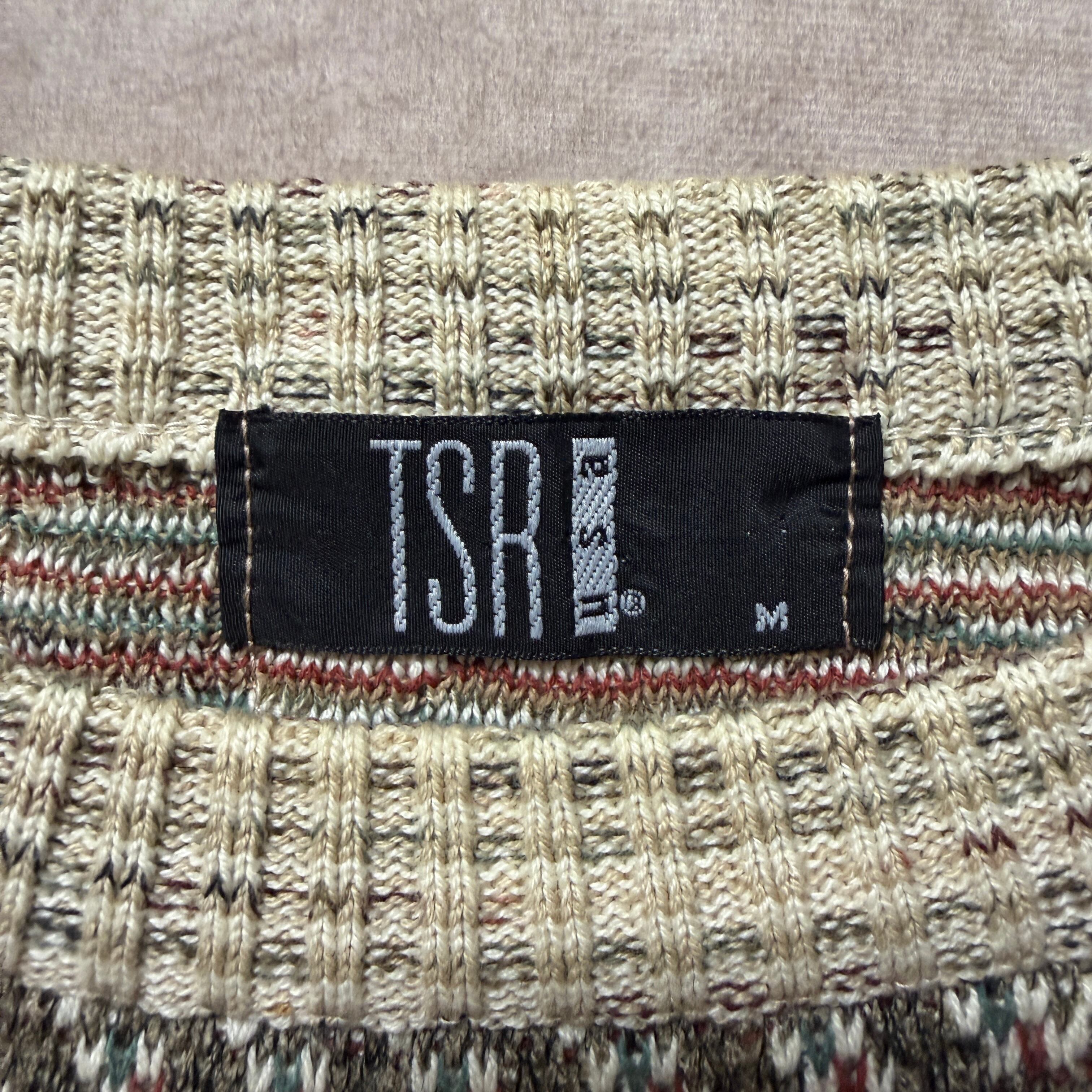 TSRは、1980〜90年代のアメリカでニットやカジュアルウェアを中心に展開していたブランド。量産品でありながら、複雑な編み柄や配色を取り入れたデザイン性の高いニットを多く手がけ、当時のアメリカンカジュアル〜トラッド層に支持されてきた。