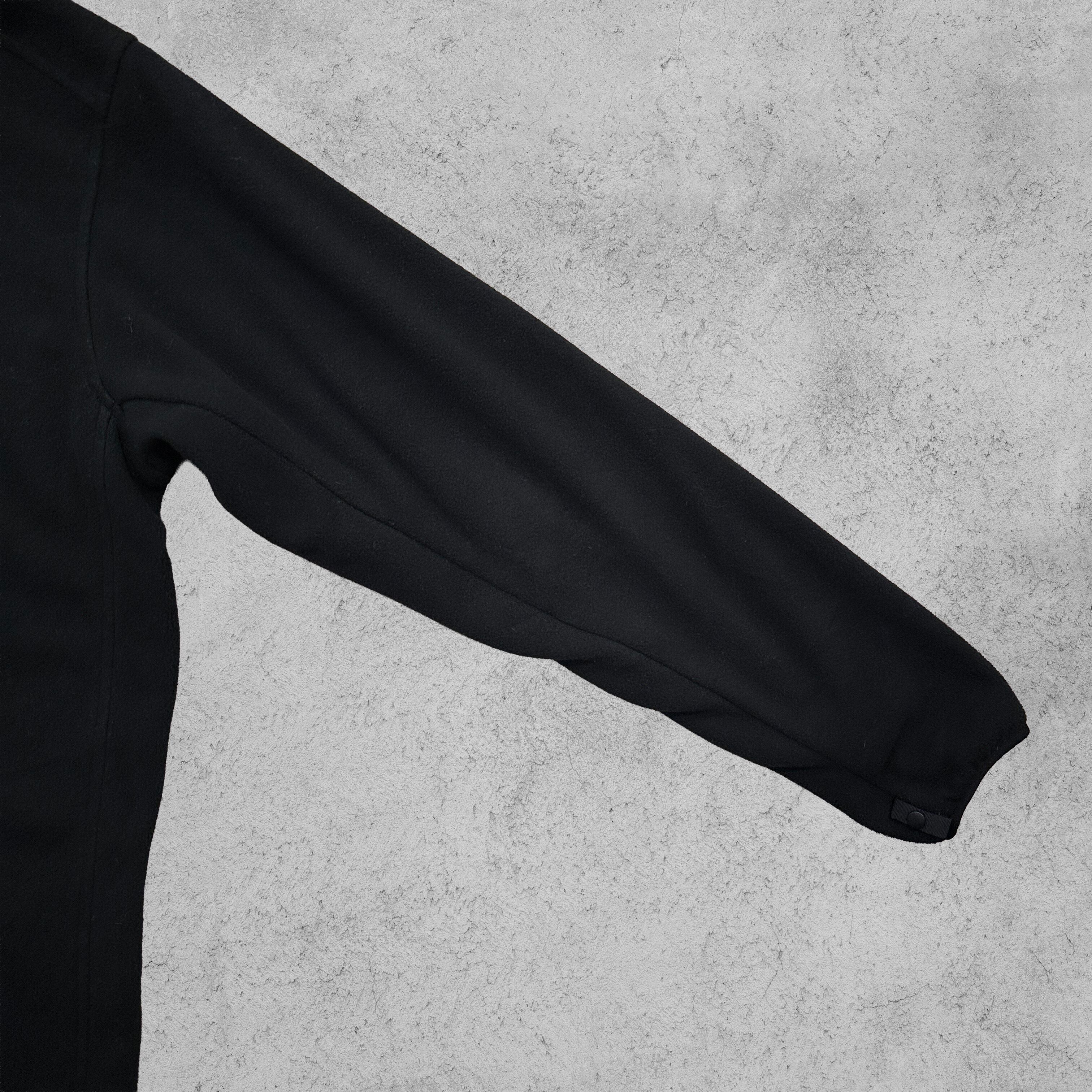 ブラックボディに左胸ワンポイントロゴのみのミニマルなデザインが特徴のフルジップフリースジャケット。