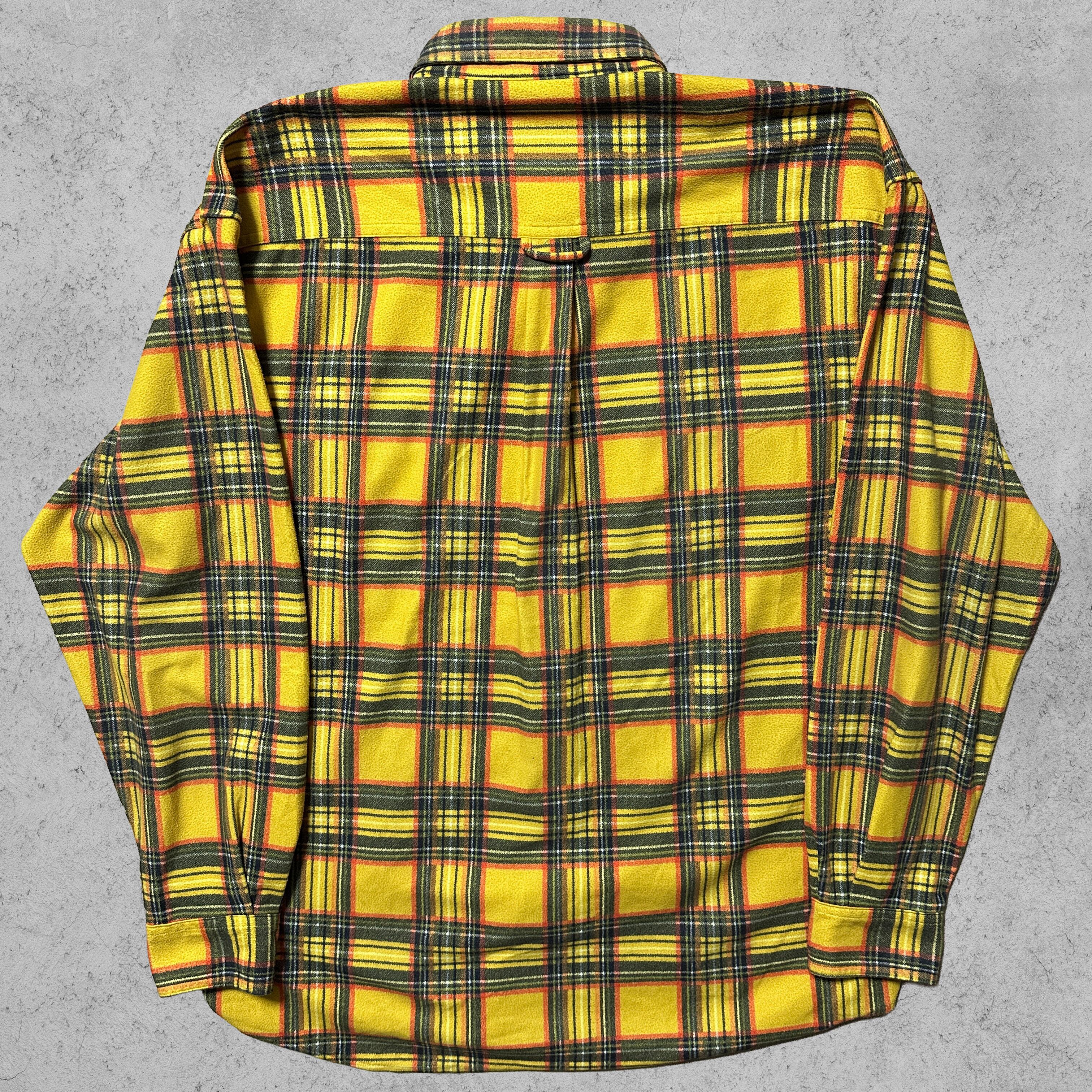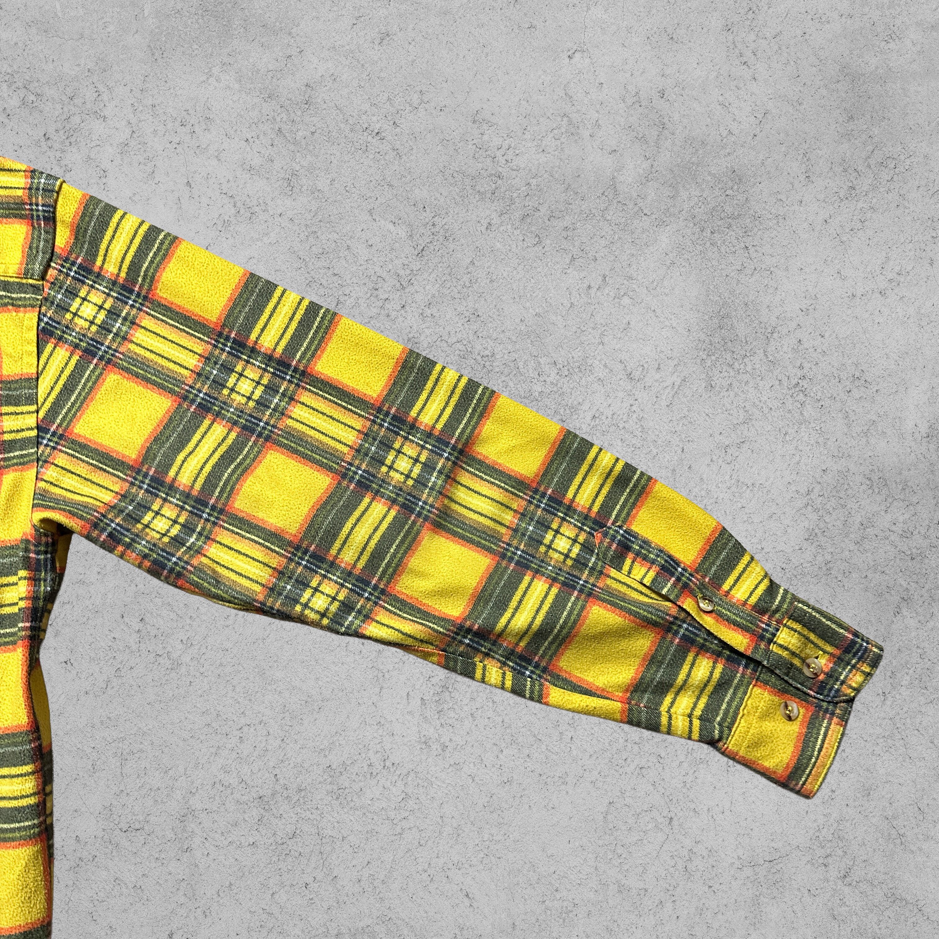 イエローを基調にグリーンとオレンジを効かせたチェック柄が印象的なフランネルシャツ。