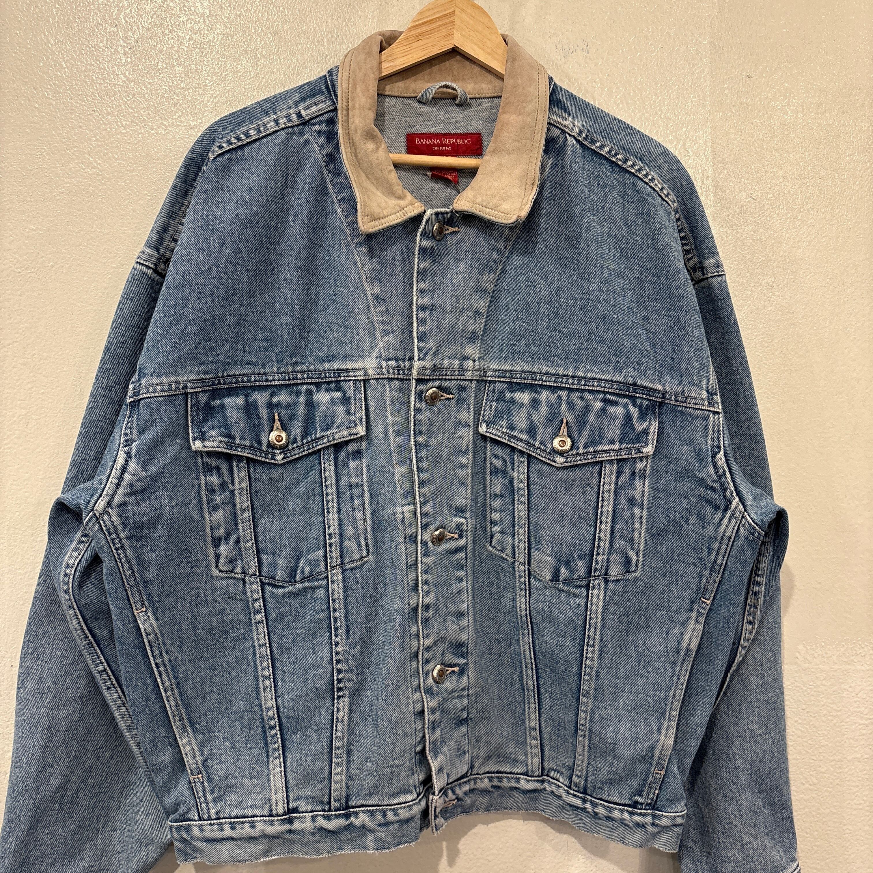90s 【BANANA REPUBLIC】 leather collar denim jacket size L