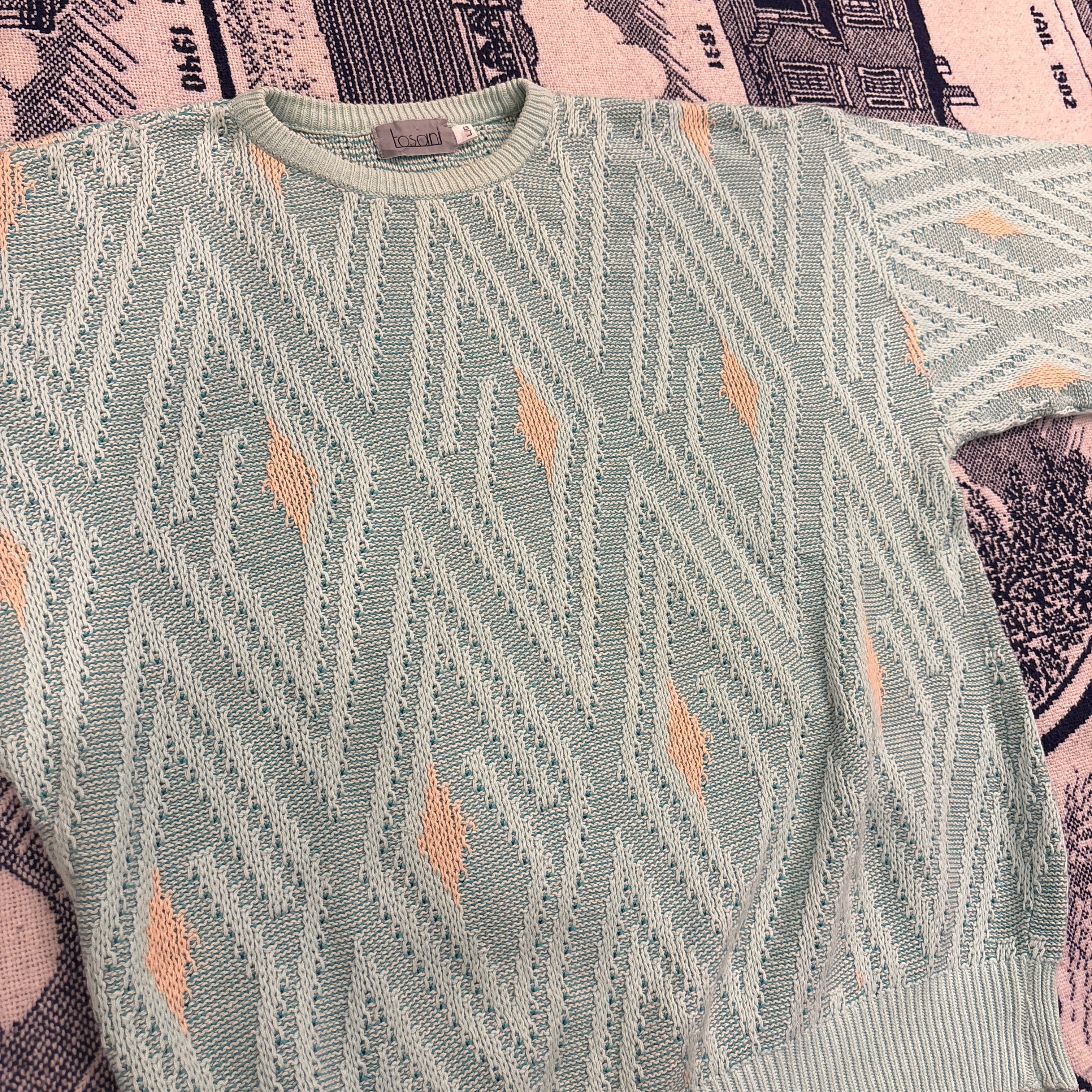 90s 【tosani】 3D Like Acrylic Knit Sweater size L MADE IN Canada