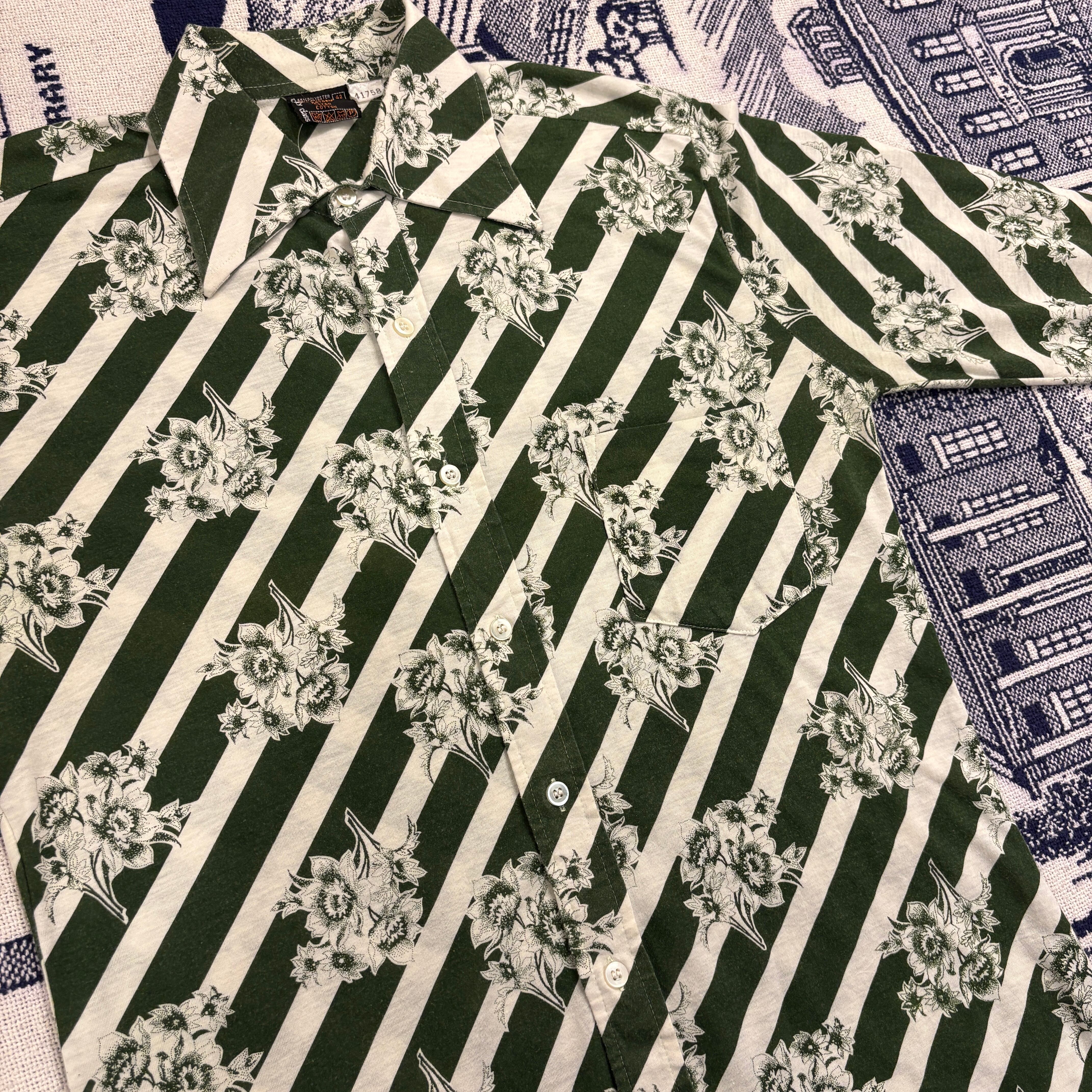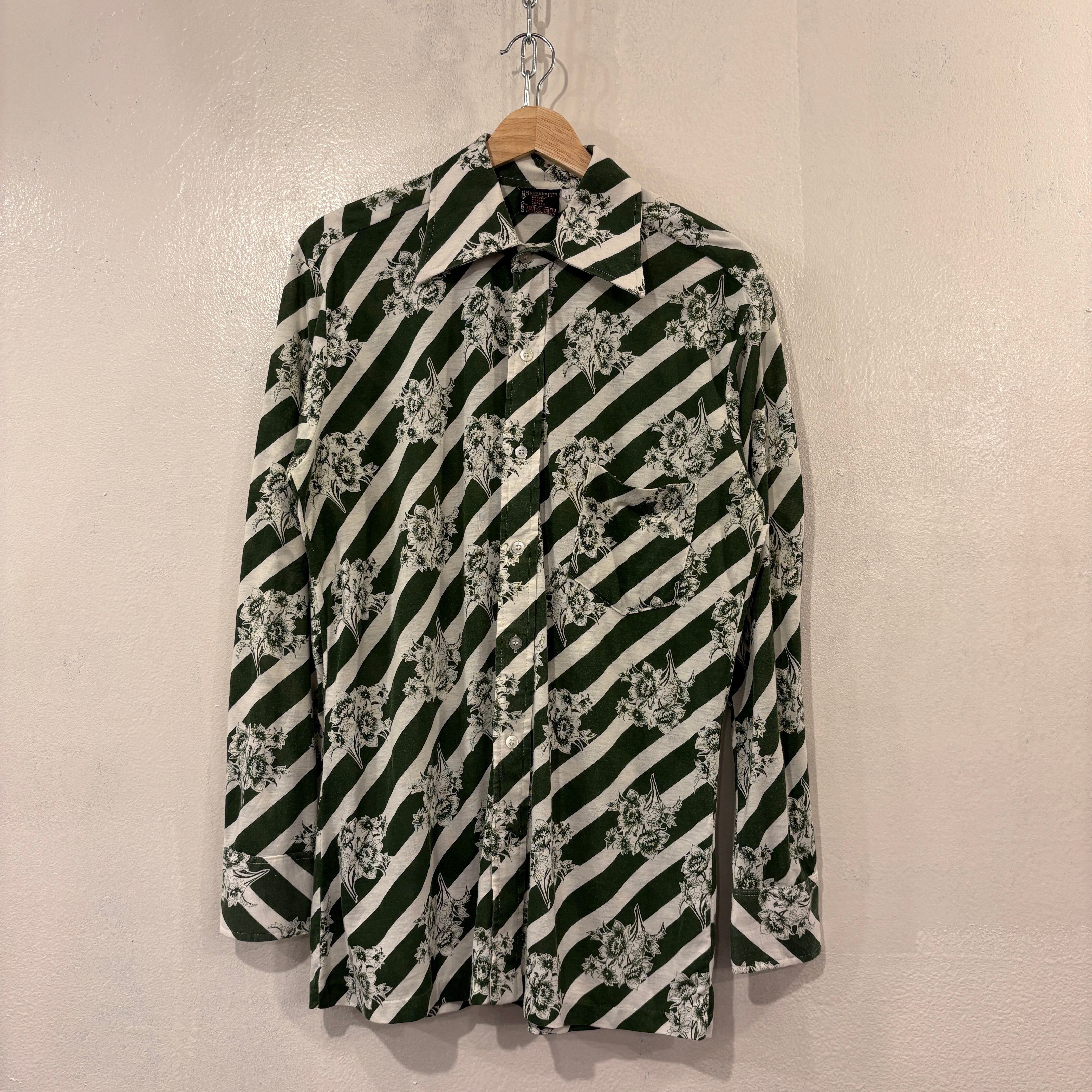 総柄シャツ 花束 フラワー 70年代 でか襟